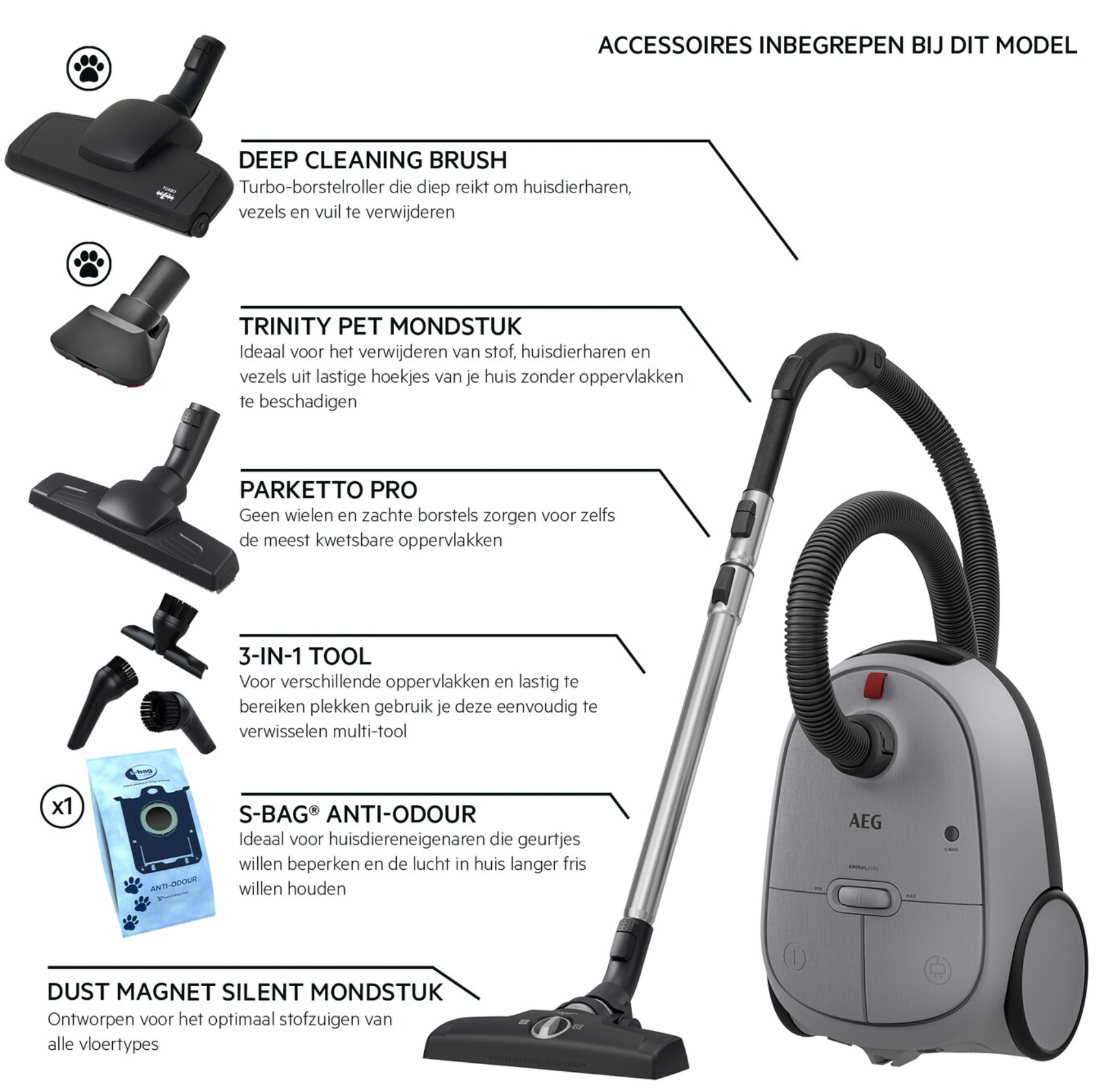 AEG AB61A5UGT ANIMAL 6000 stofzuiger met zak