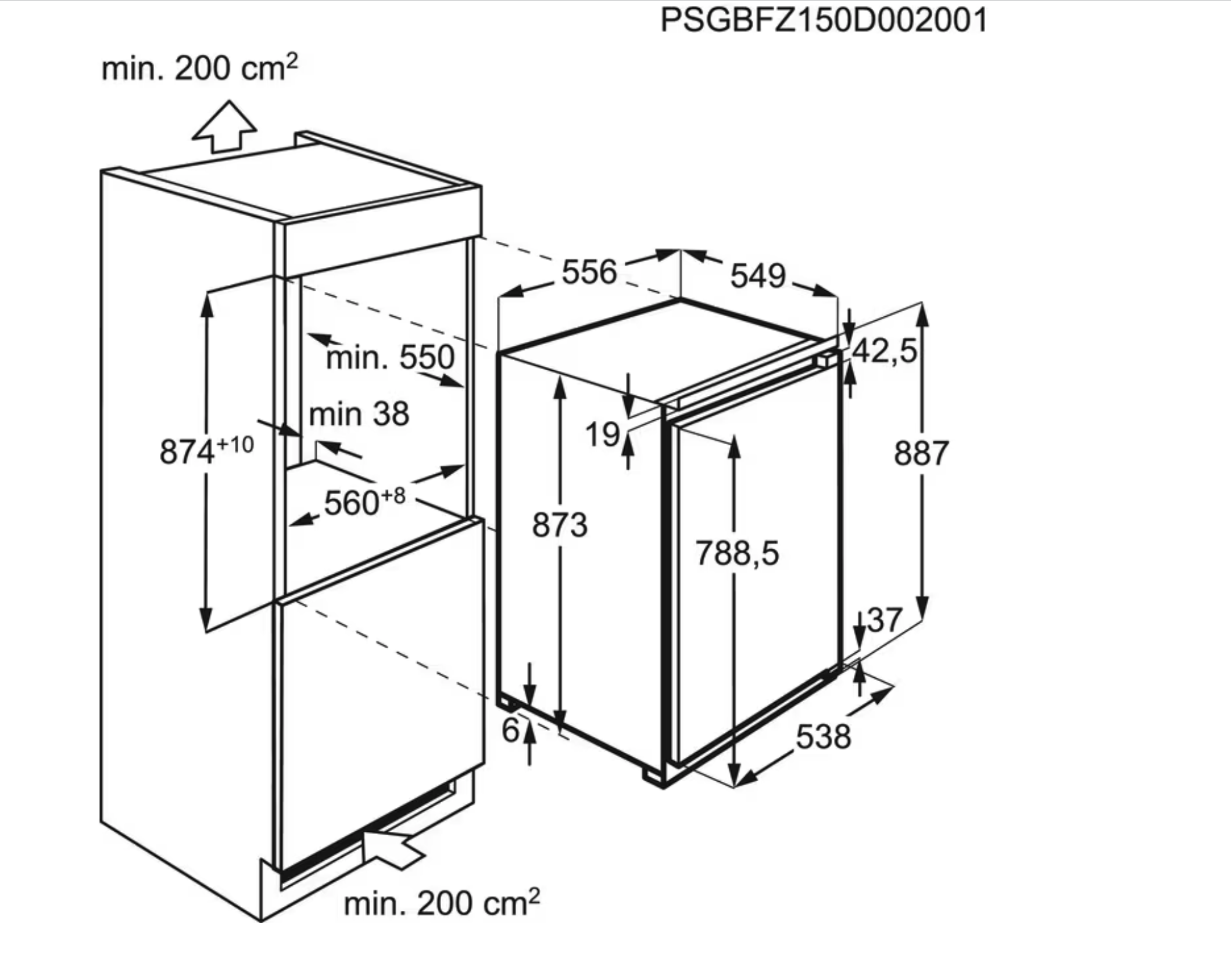 880 mm inbouwhoogte