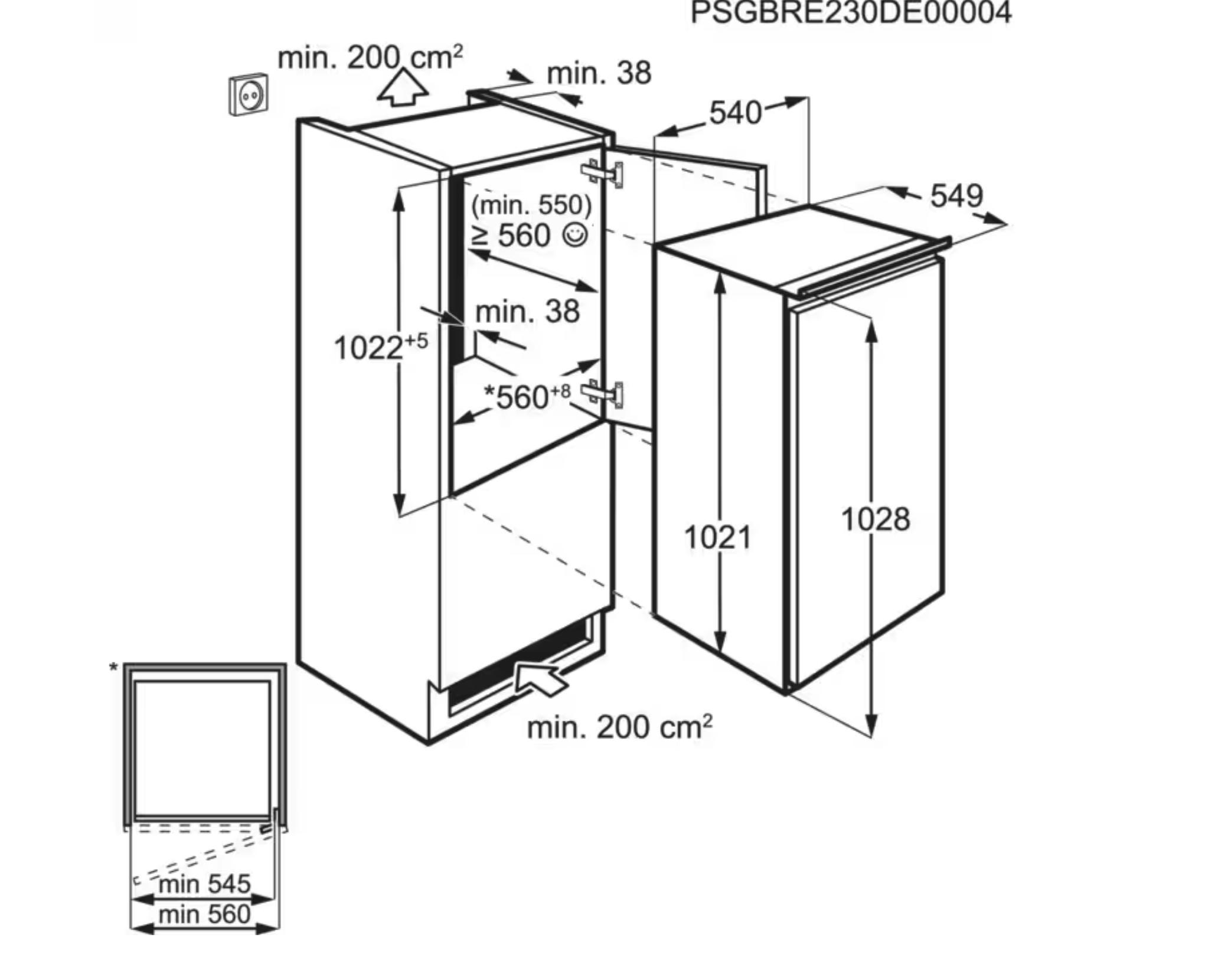 1030 mm inbouwhoogte