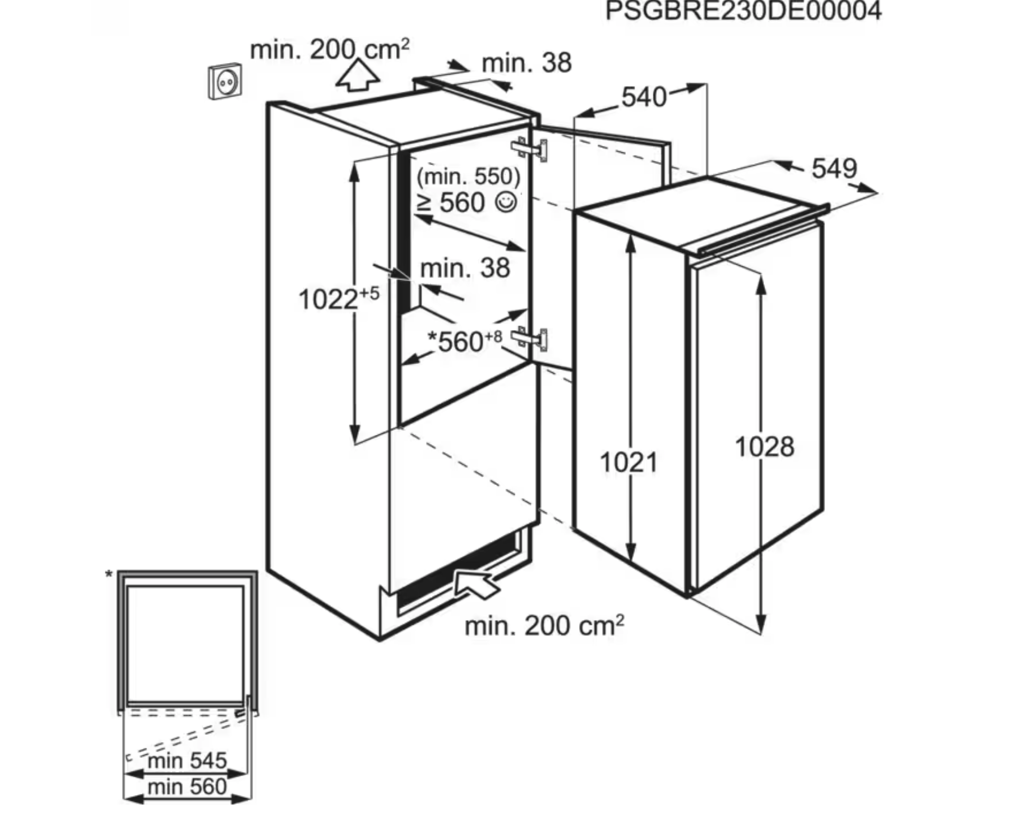 1030 mm inbouwhoogte