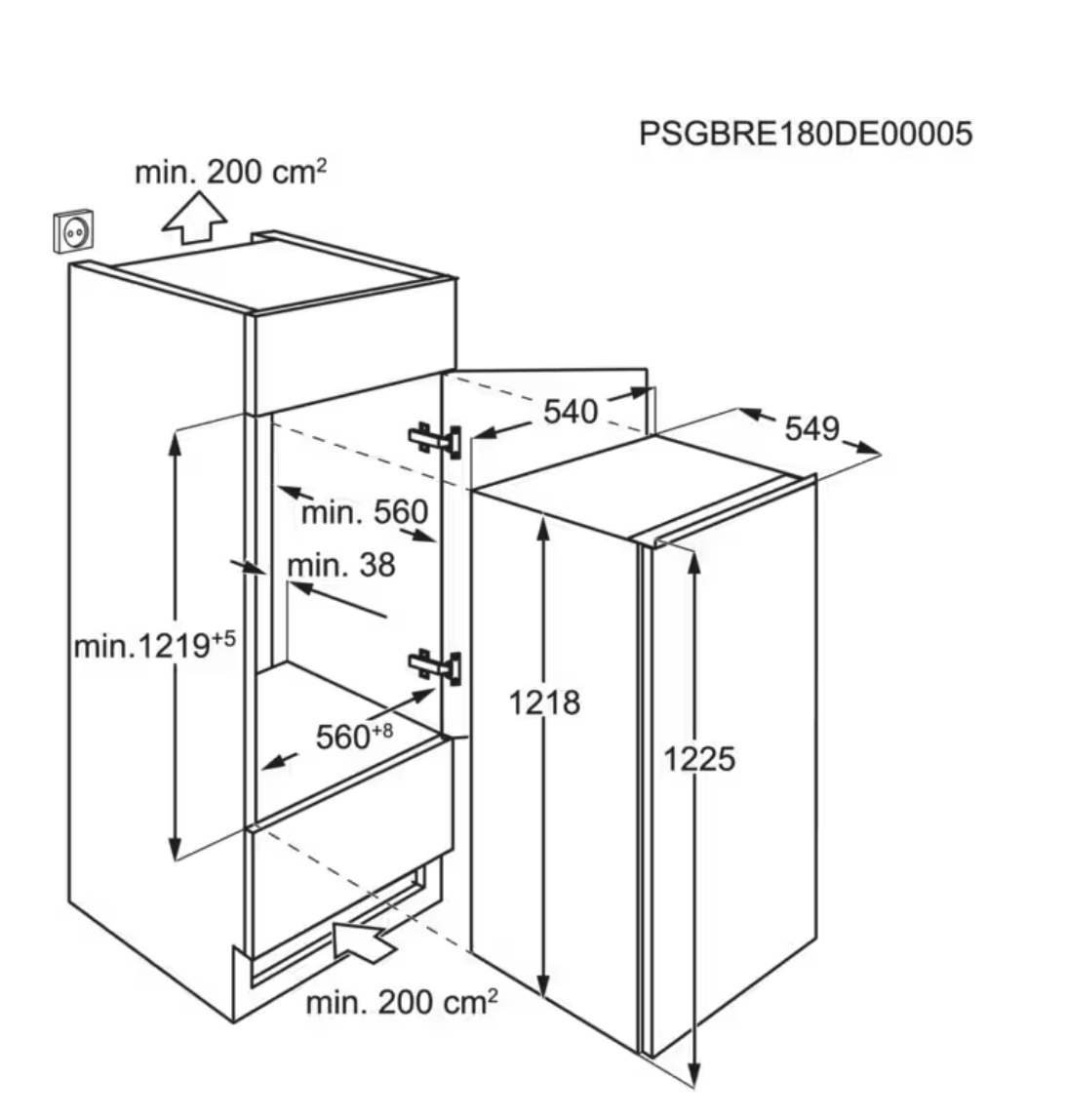 1225 mm inbouwhoogte