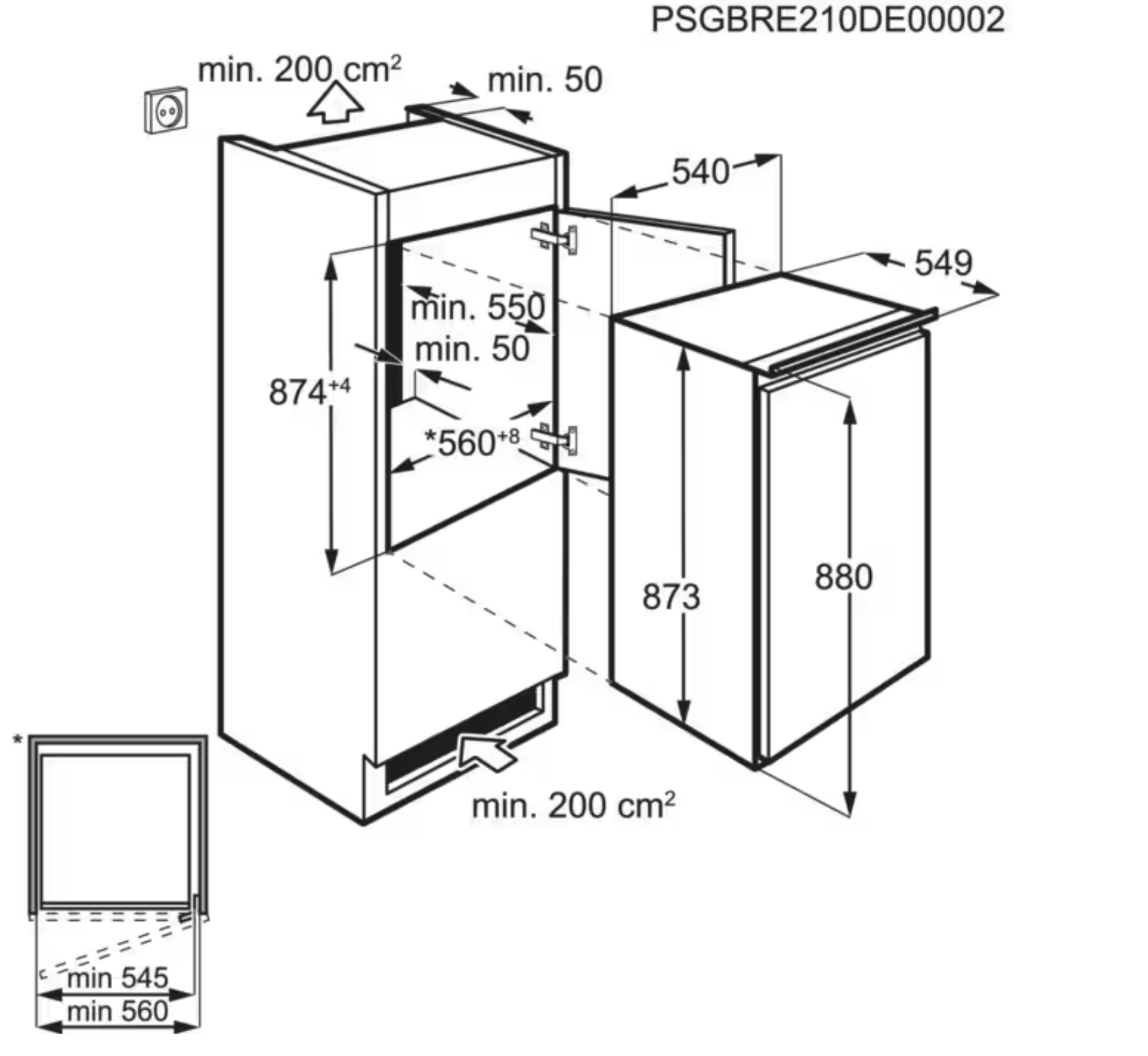 880 mm inbouwhoogte