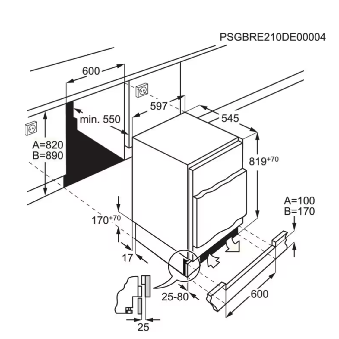 820 mm inbouwhoogte