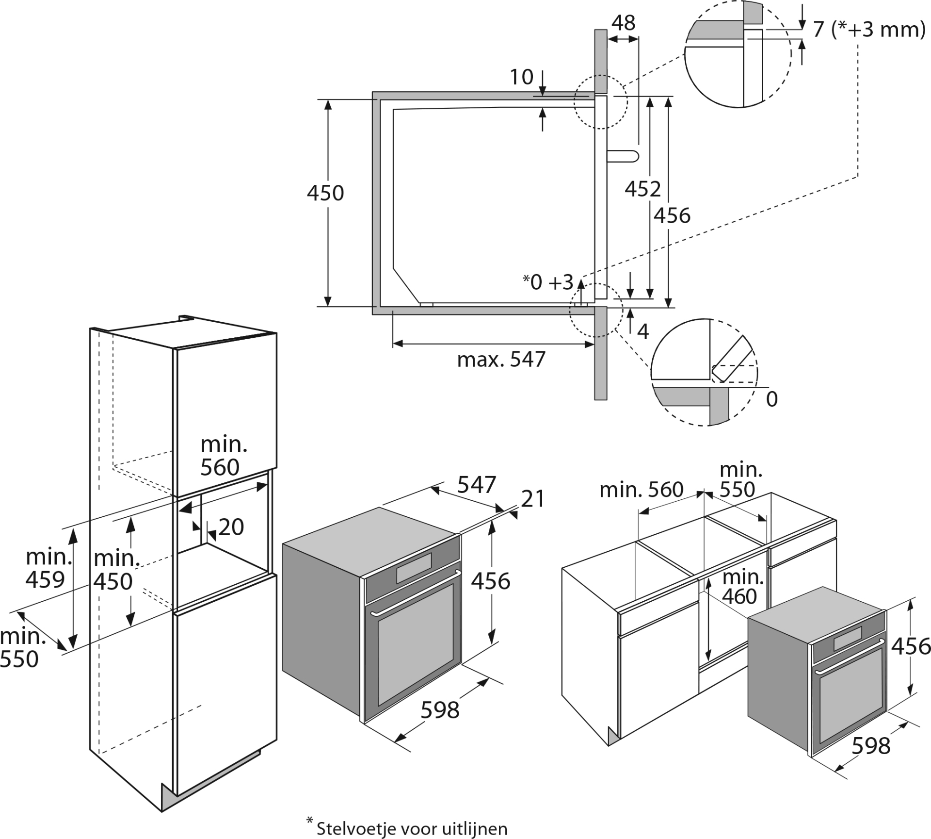 inbouw mogelijk in: hoge kast, onder werkblad