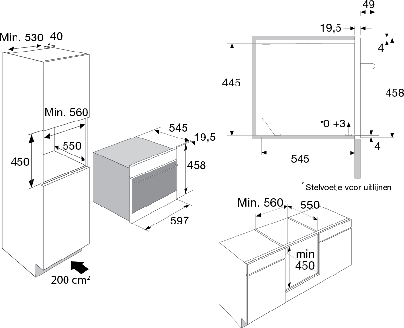 inbouw mogelijk in: hoge kast, onder werkblad