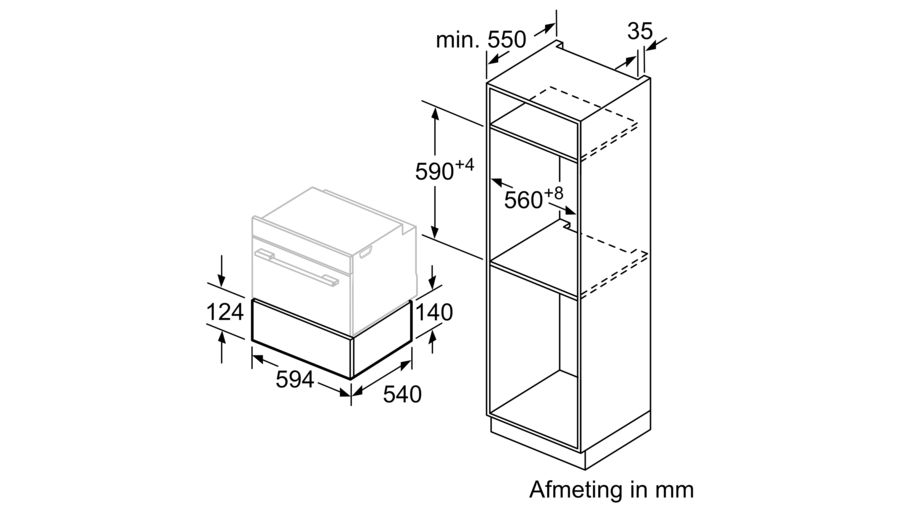 - Afmetingen toestel (HxBxD): 140 x 594 x 540 mm
