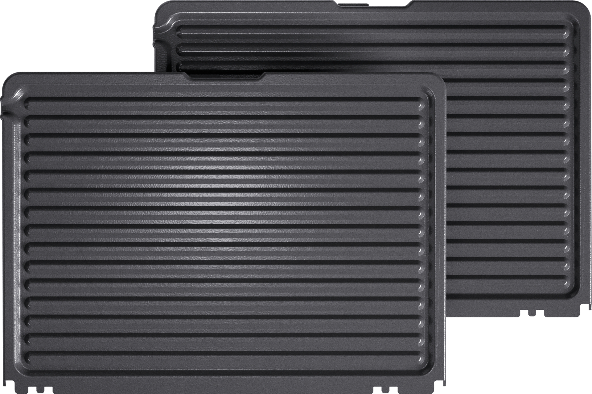 Handige voorzieningen: grillplaten met afvoergleuf en twee vetopvangladen.