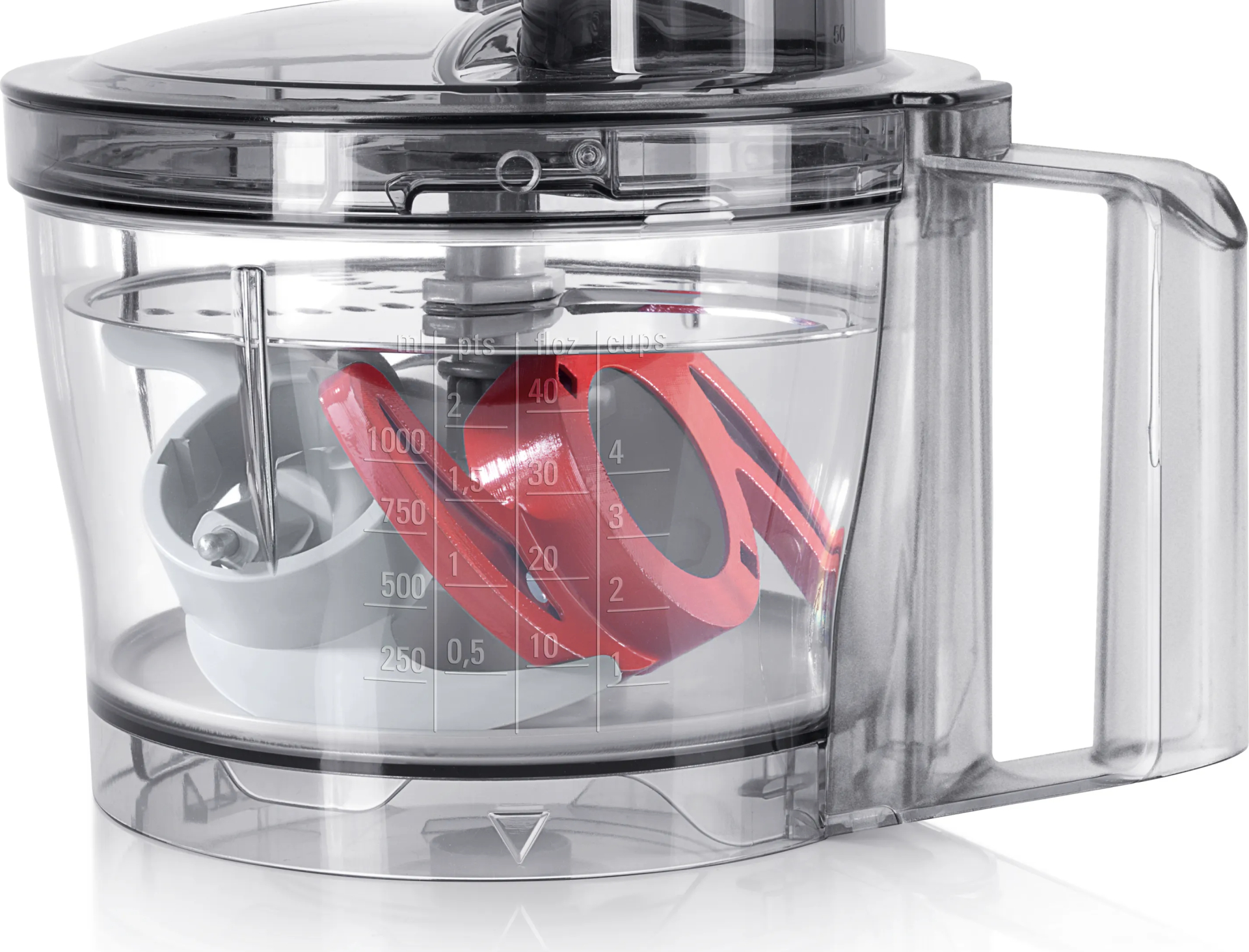 • Doorzichtige mengkom van 2.3 l met vulschacht, duwer en deksel voor het mengen van 500g deeg + ingrediënten (0.8 kg max)