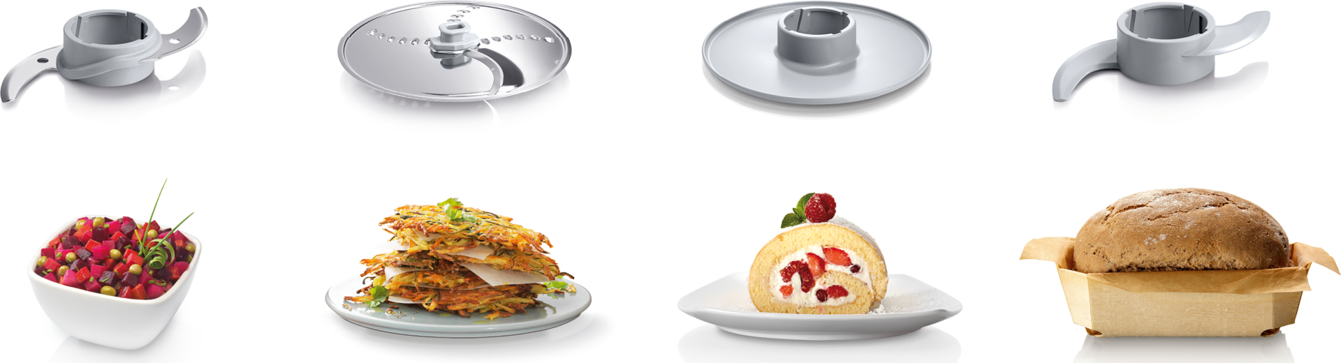 • Meer dan 20 functies: hakken, snijden, raspen, en nog veel meer. Dankzij de veelzijdige accessoires zoals het multifunctionele inox mes en de omkeerbare snijschiijf.