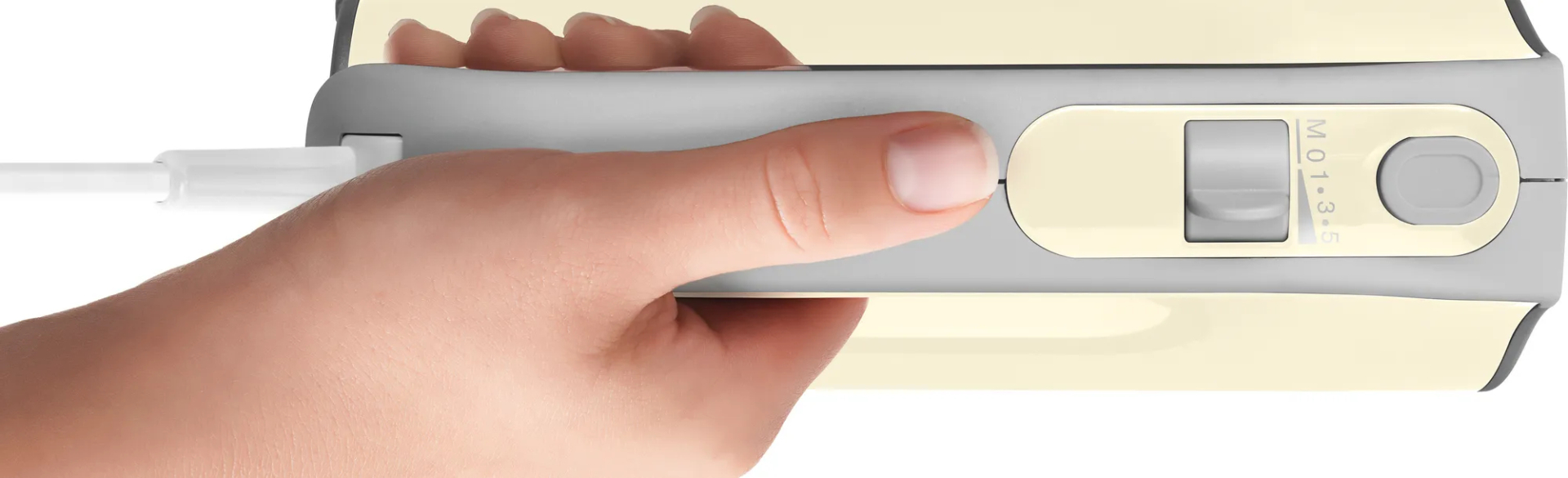 Lichtgewicht en « soft touch » handgreep voor een veilige grip tijdens het mixen.