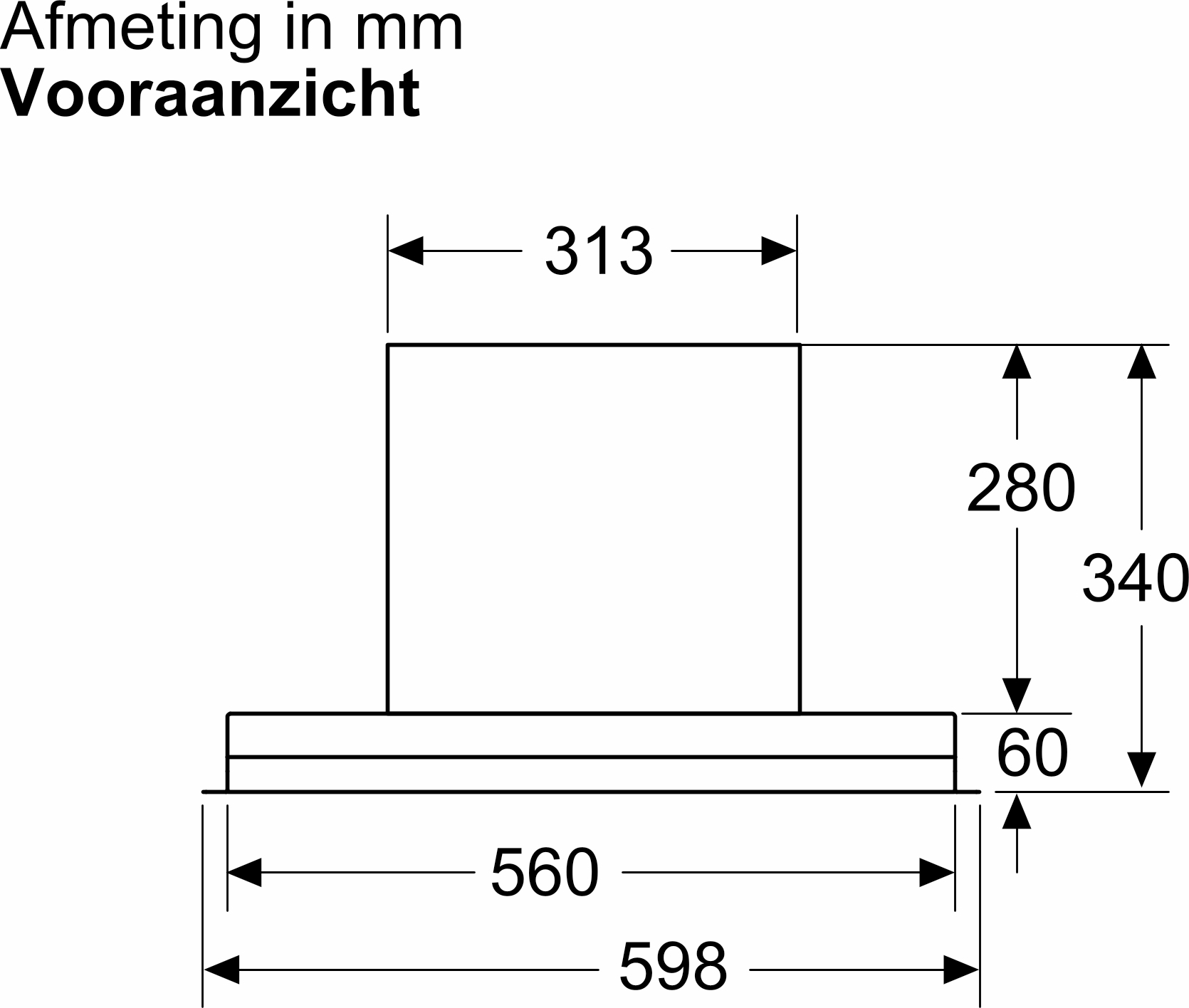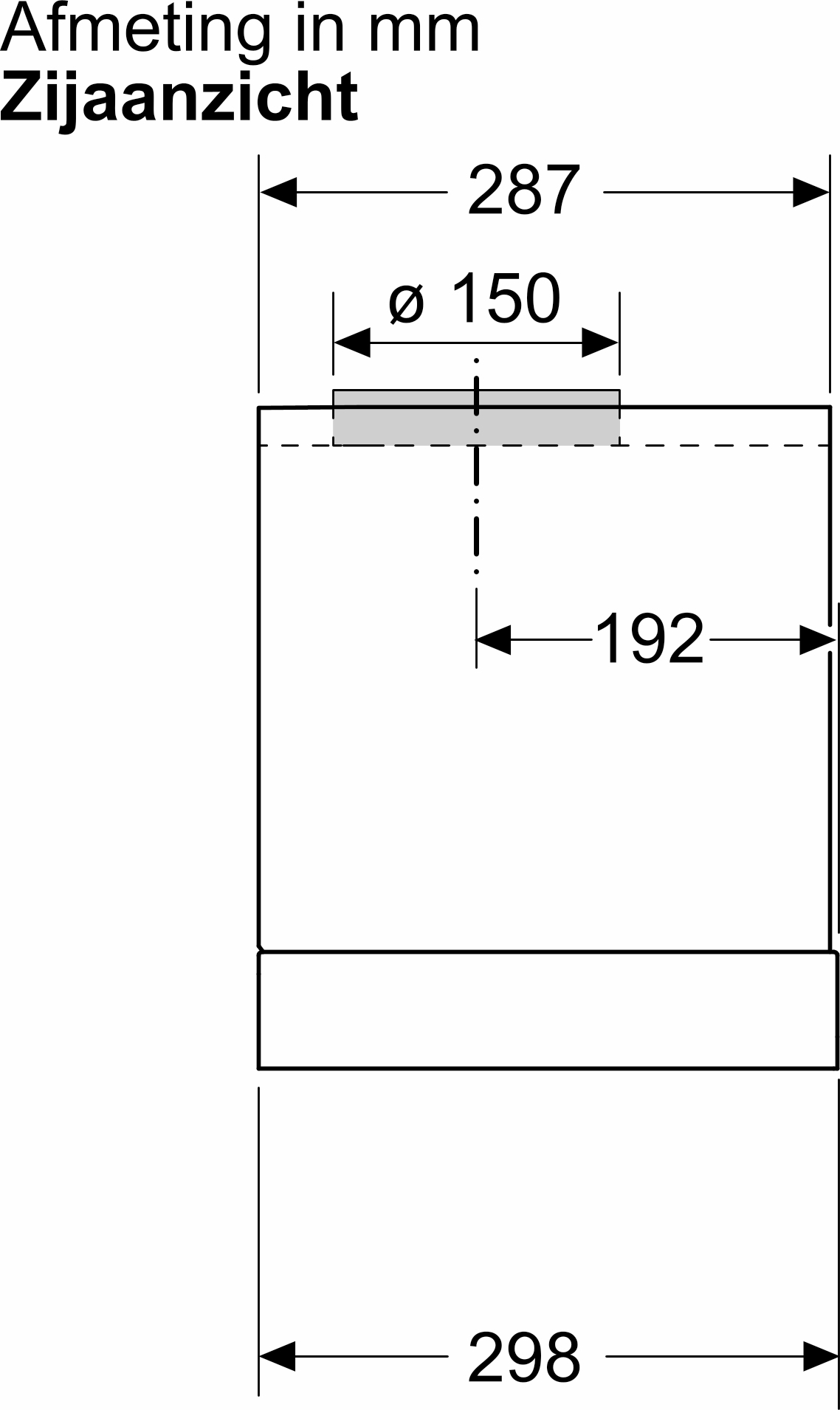 - Diameter luchafvoeraansluiting Ø 150 mm