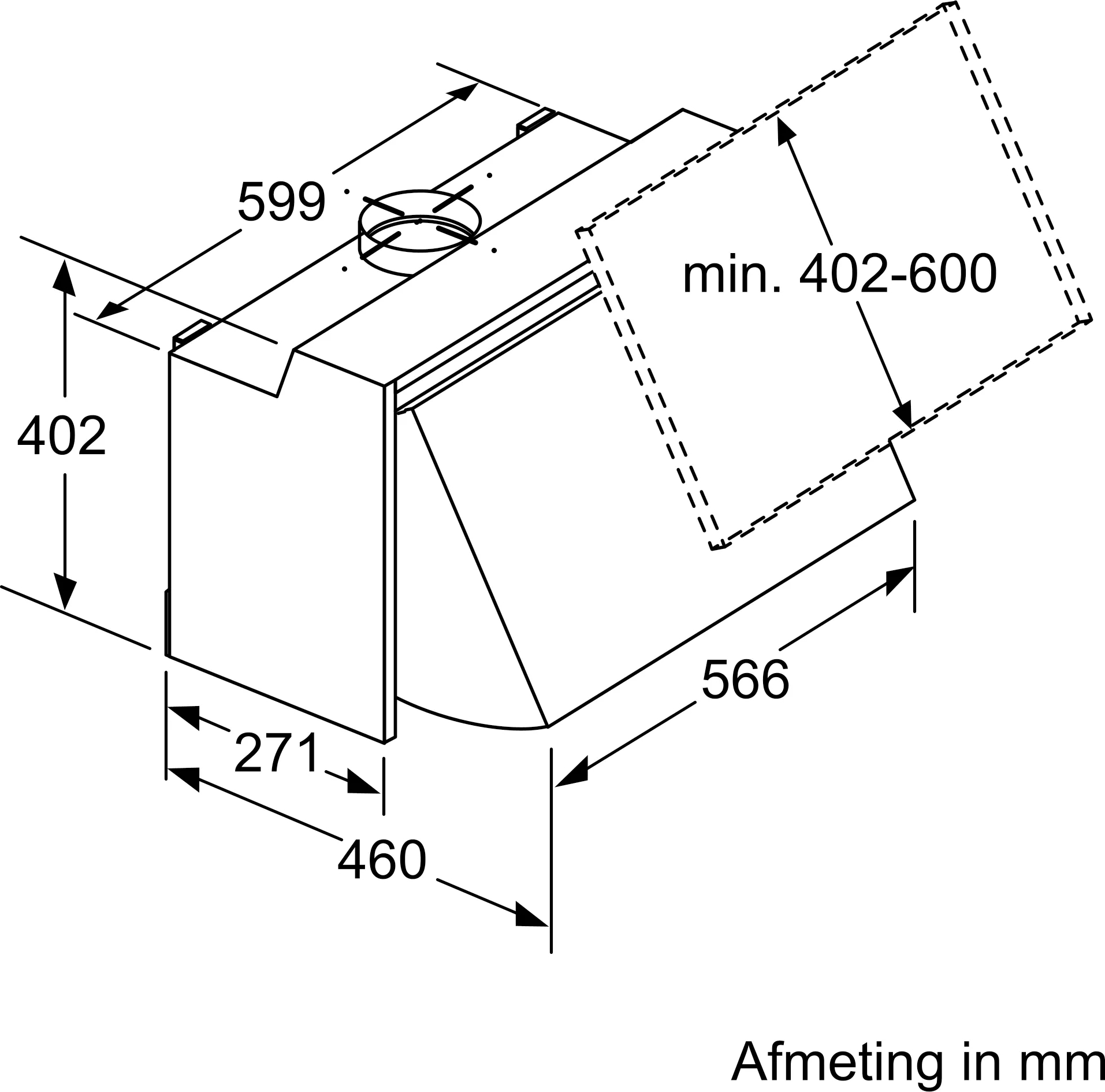Toestelafmetingen (BxD): 599 x 271 mm