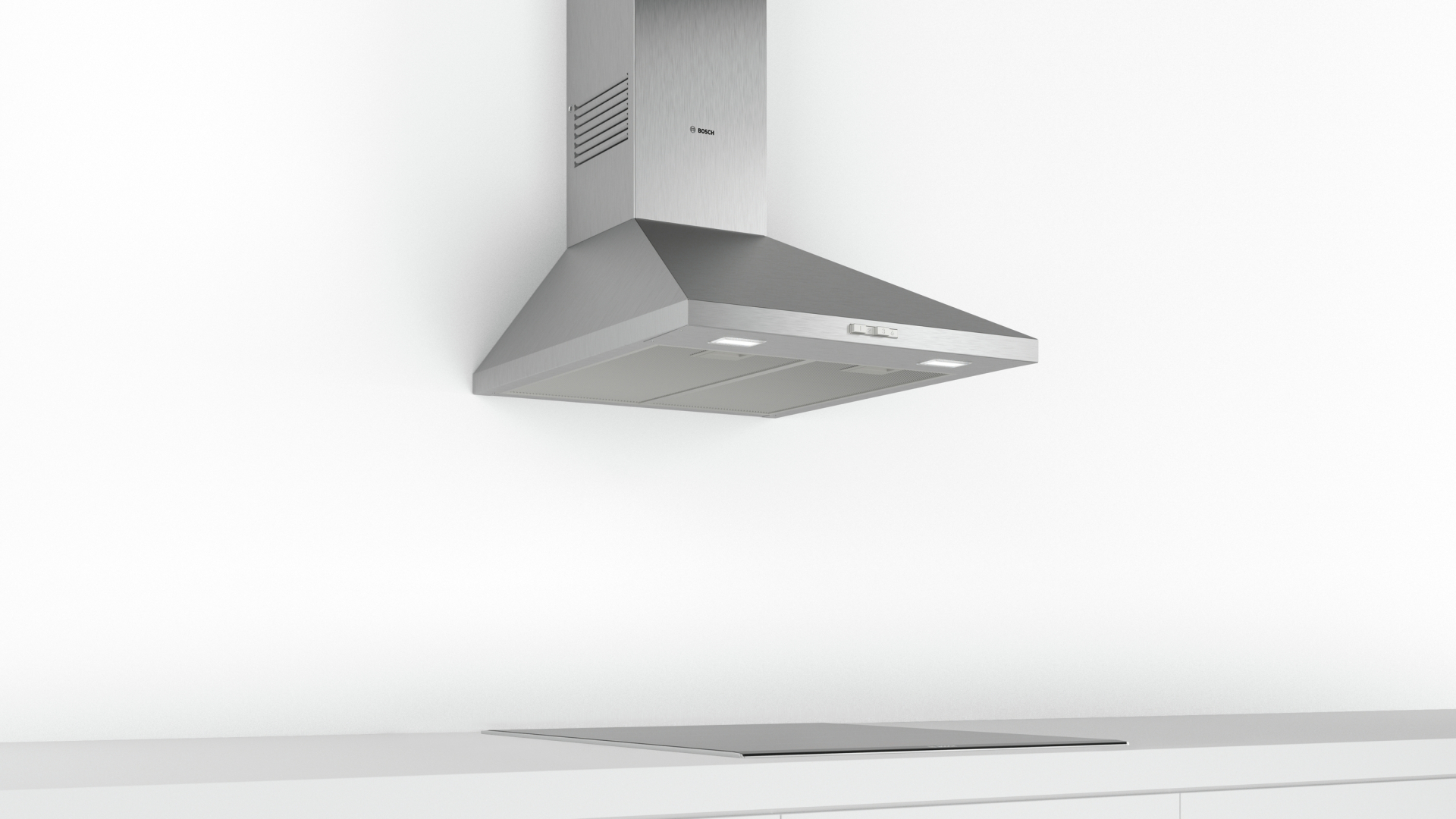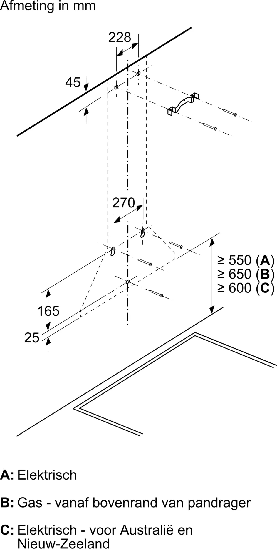 Wanddampkap: bevestiging aan de wand, boven de kookplaat
