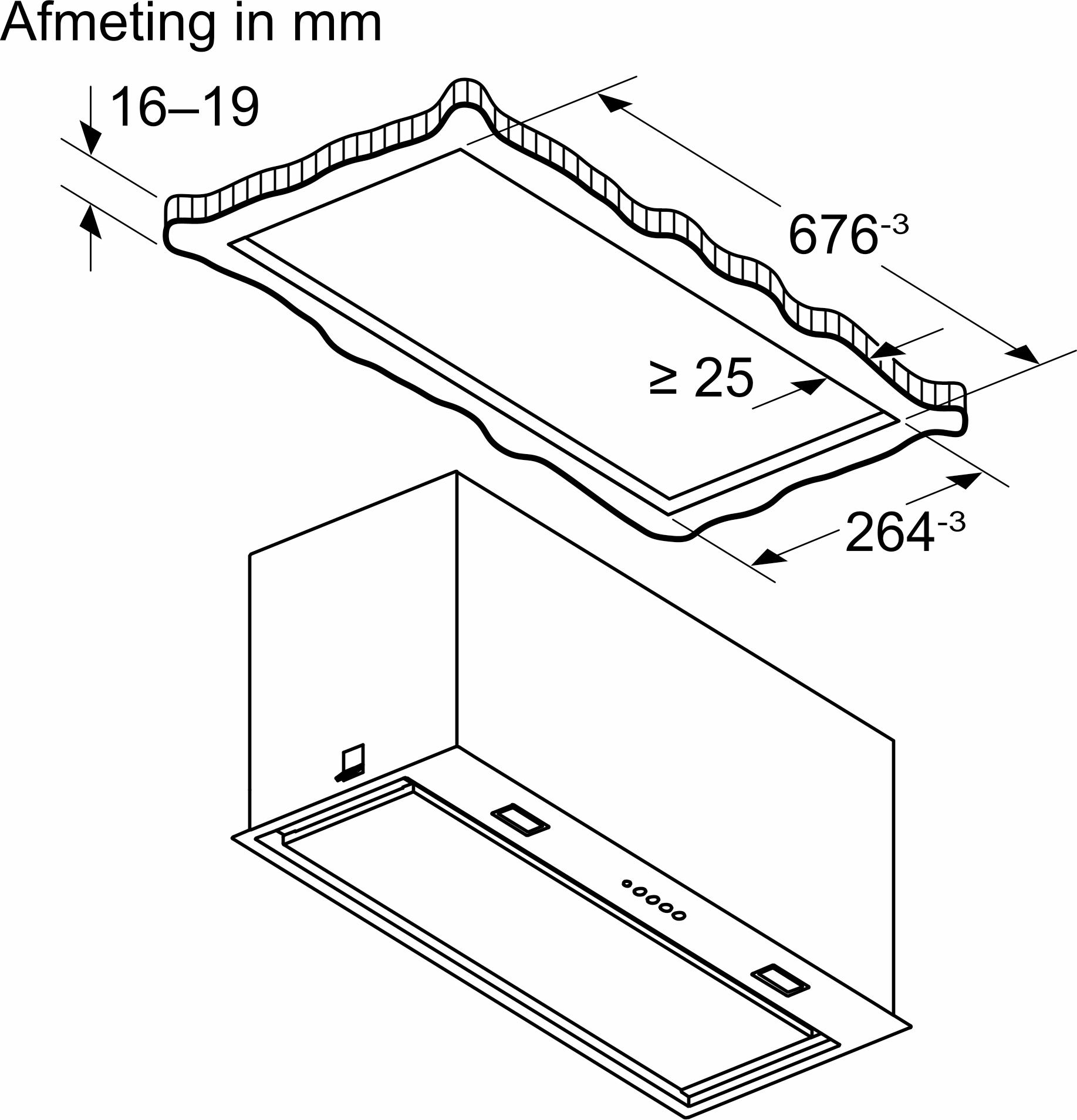- Inbouwafmetingen (HxBxD): 345 x 676 x 264 mm