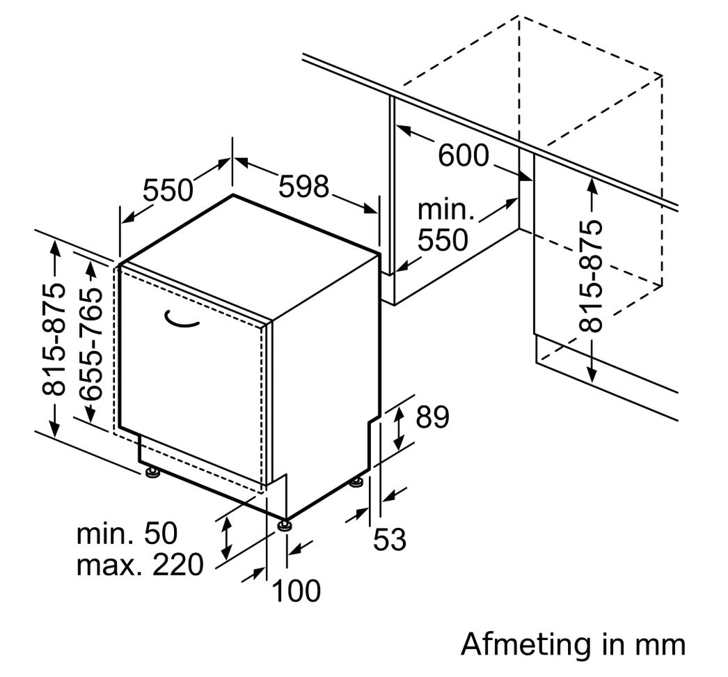 | minimum frontpaneel | 655 mm |