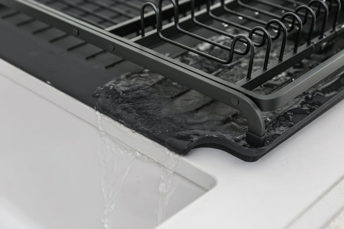 Droog aanrecht - aflopende lekbak leidt water naar de gootsteen.