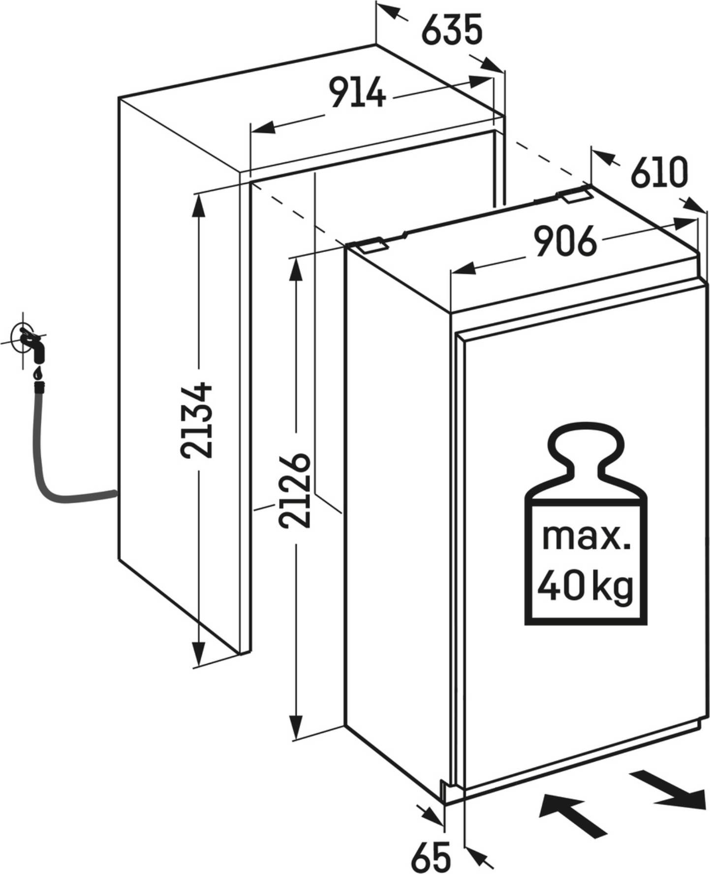 E Deur-op-deur No-frost 2134 mm minimum nishoogte 564 l inhoud vriesgedeelte€ 10.995,00