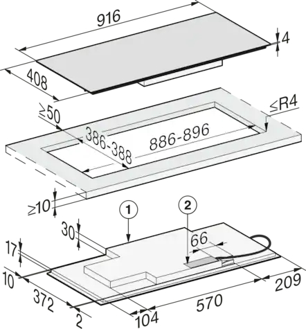 Afmetingen in mm (breedte) 916