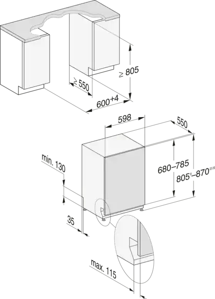 A 805 mm minimum nishoogte 870 mm maximum nishoogte Automatische deuropening Besteklade€ 1.849,00