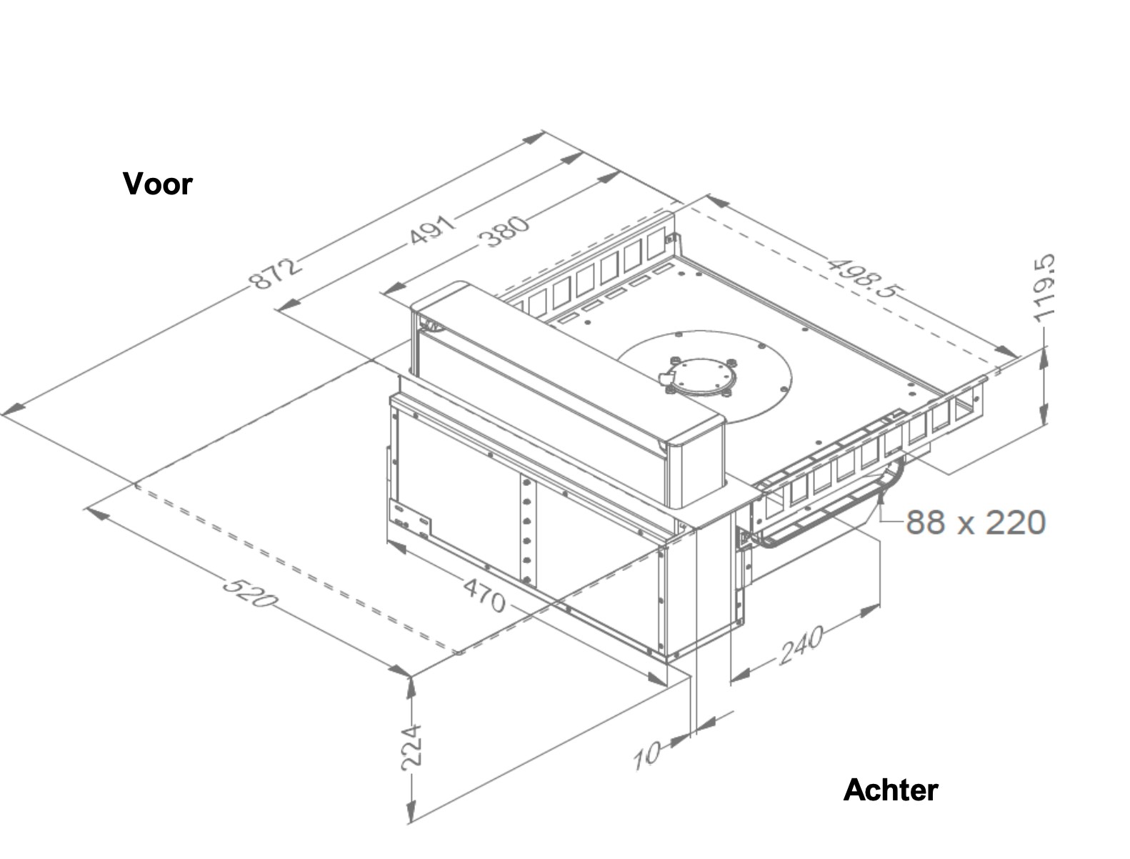 Afmetingen (BxDxH) (mm) 872 x 520 x 224