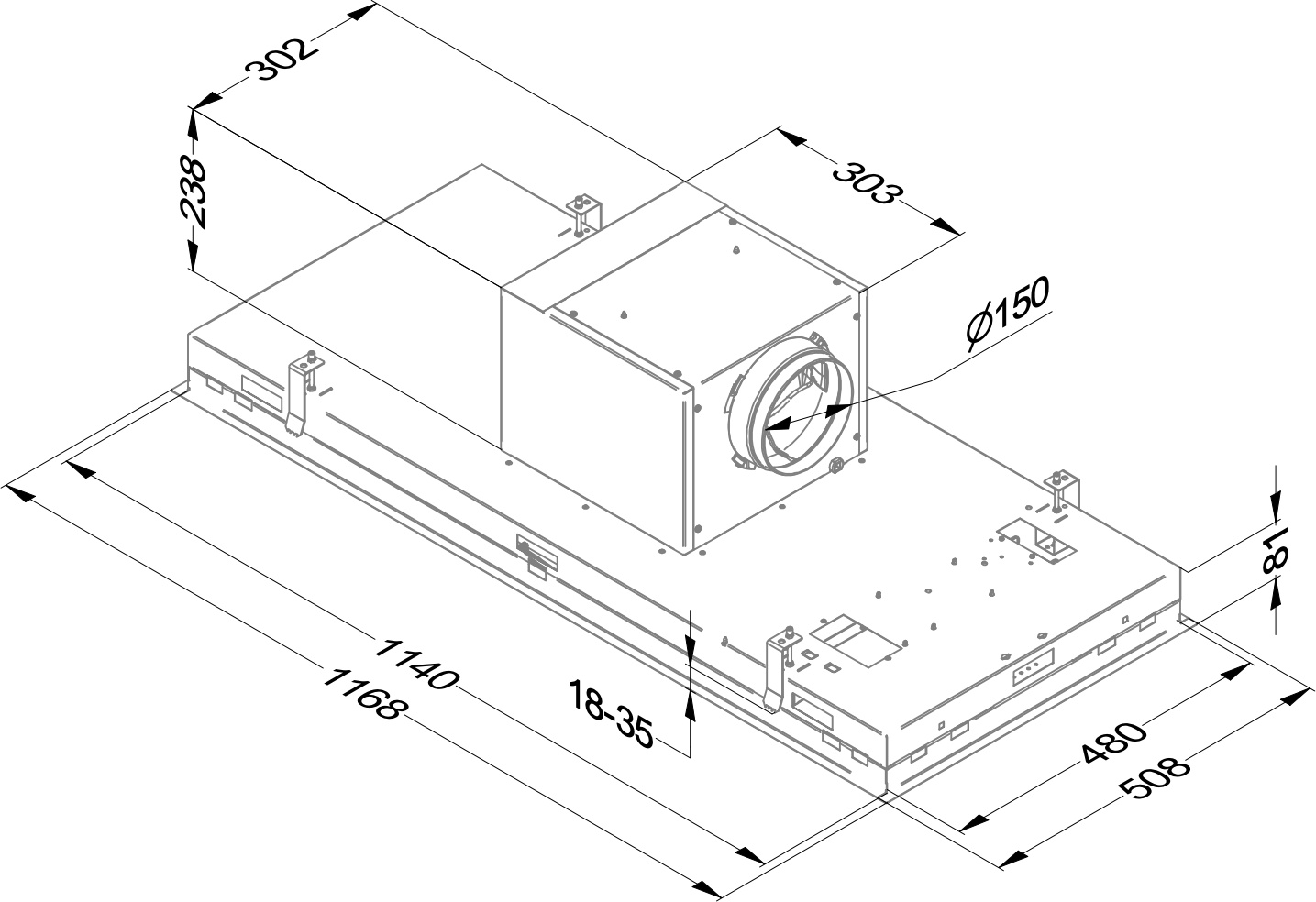 Product afmetingen (BxDxH) (mm) 1168 x 508 x 319