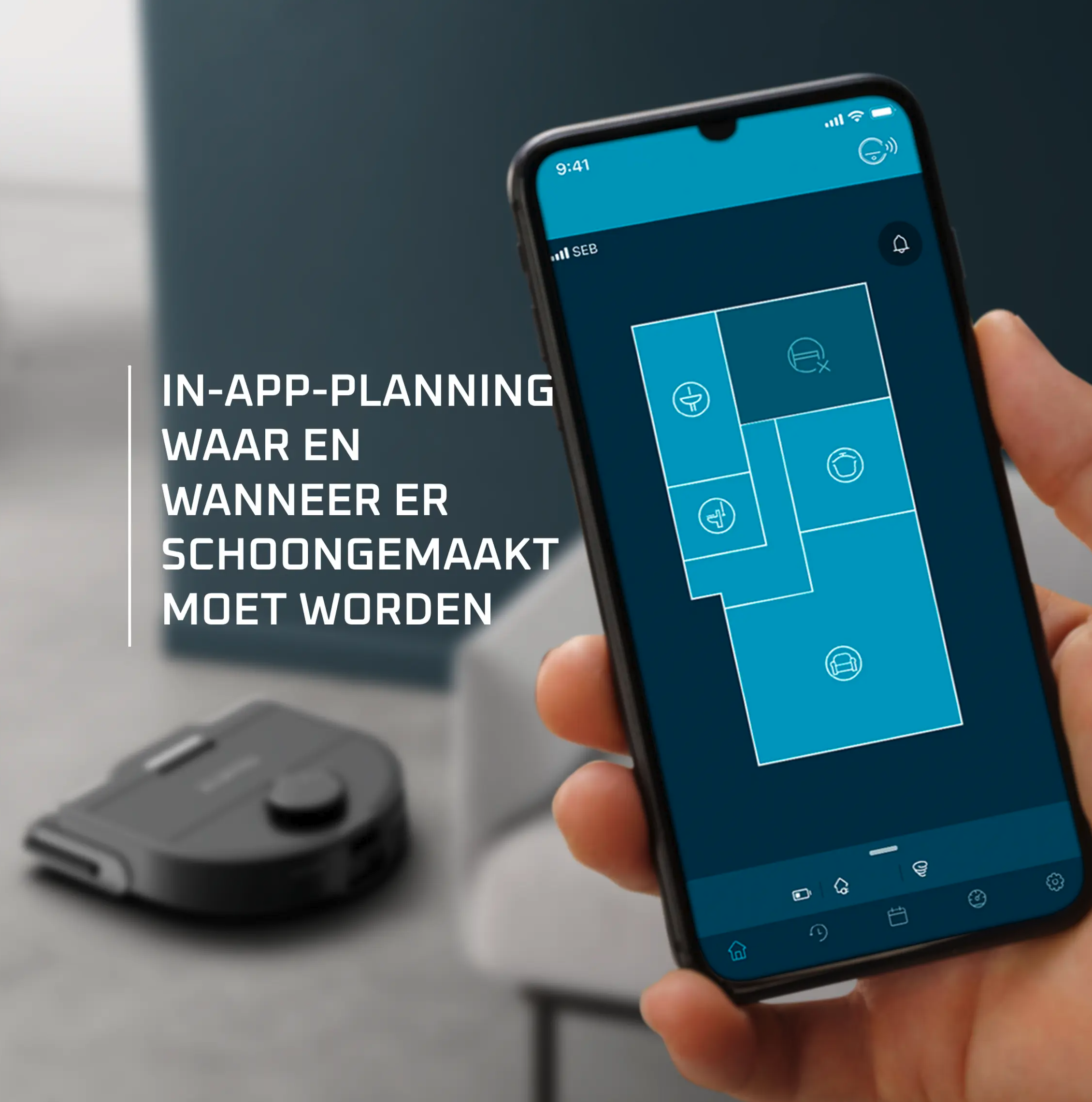 Selectie van te reinigen ruimtes: Ja (gepersonaliseerd)