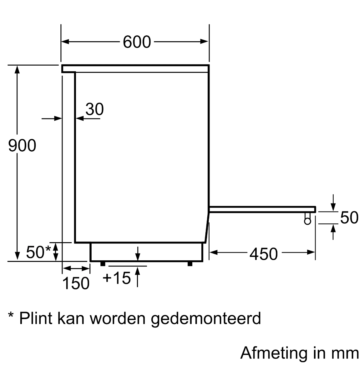 Afmetingen toestel (HxBxD): 900 x 600 x 600 mm