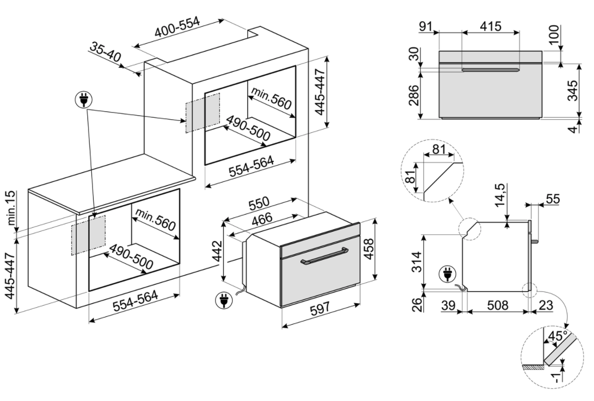 SMEG SO4902M1P multifunctionele oven met microgolfoven - 45cm