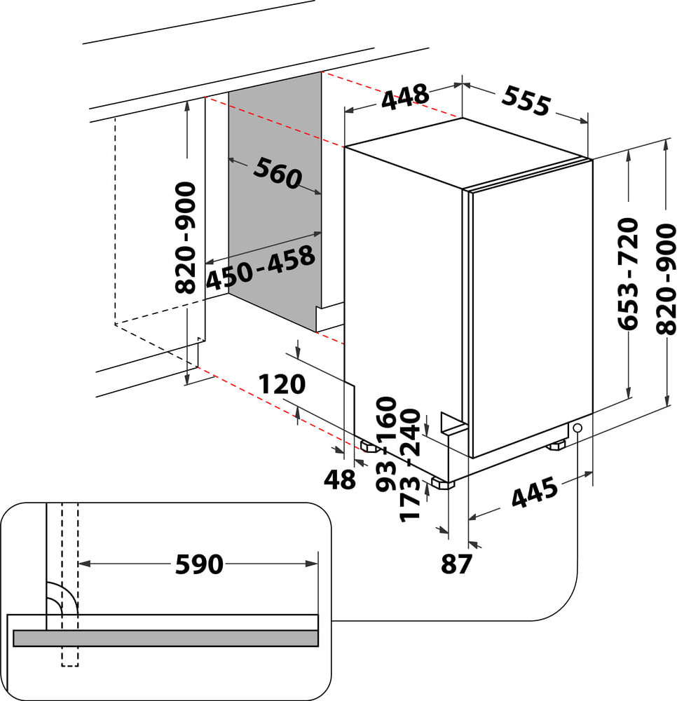 B 820 mm minimum nishoogte 900 mm maximum nishoogte Automatische deuropening Besteklade€ 949,99