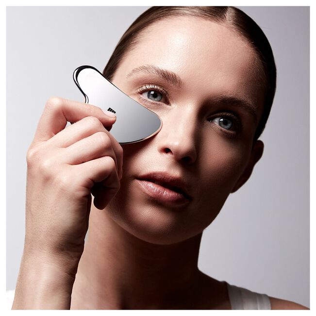 Dankzij de speciale vorm kan de tool gebruikt worden voor verschillende delen van het gezicht en de massage stimuleert de huid en bevordert de bloedcirculatie, zodat de teint er na gebruik frisser en rooskleuriger uitziet.
