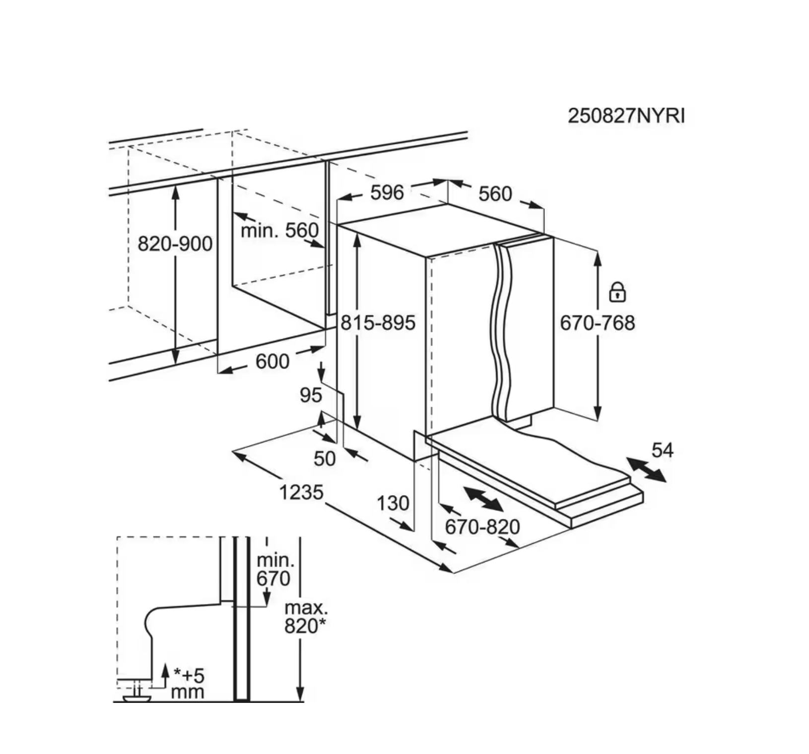 | minimum frontpaneel | 670 mm |