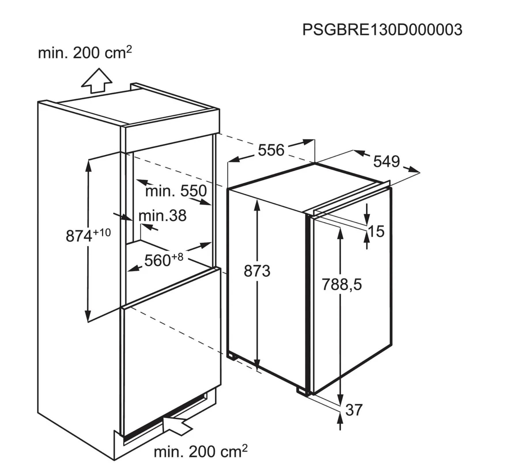 880 mm inbouwhoogte