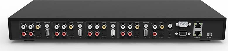 Ingang: Stereo RCA, optical, coaxial, USB (mass storage)