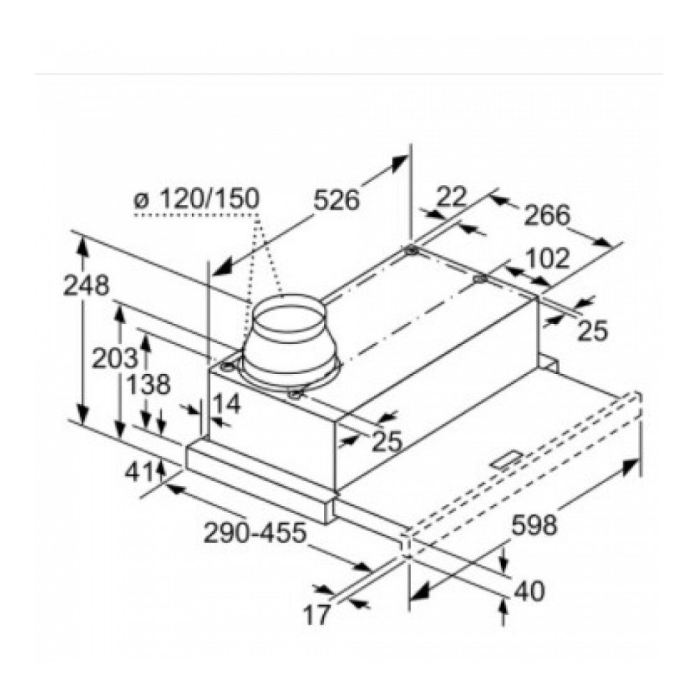 Diameter luchtafvoer min/max : 120 / 150 mm