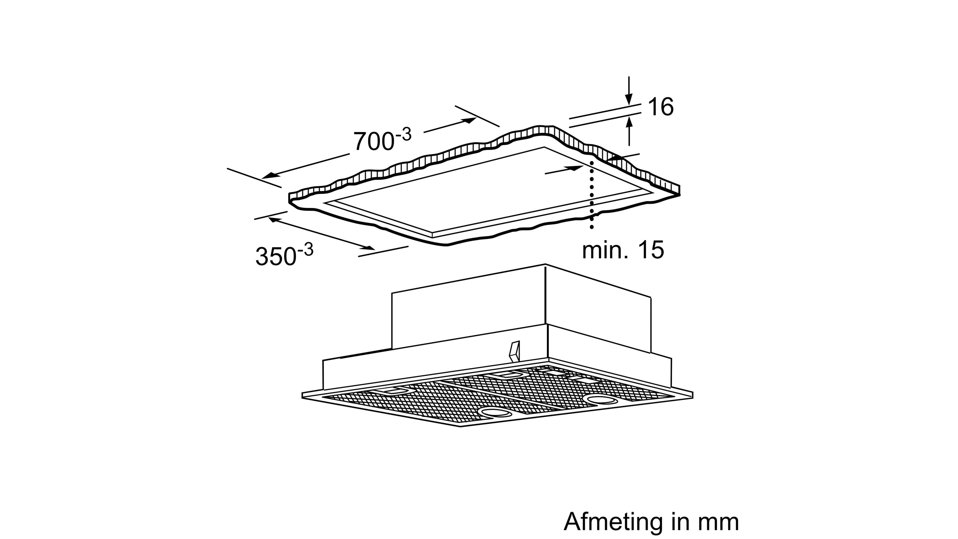 Inbouwafmetingen (HxBxD): 255 x 700 x 350 mm