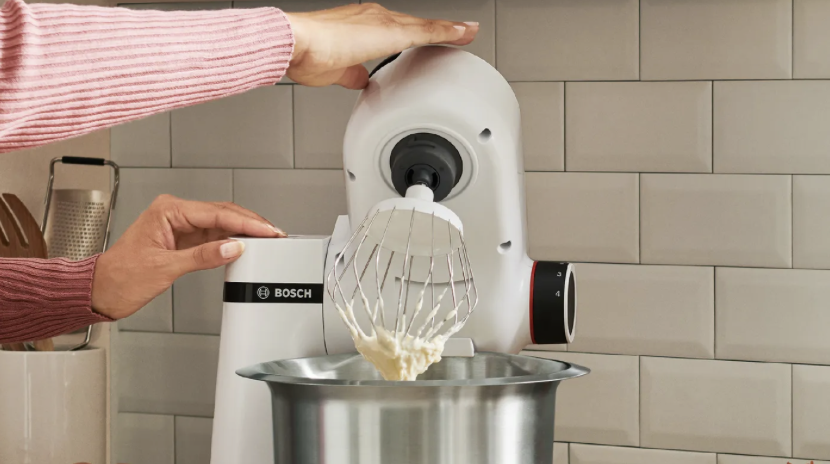 Met kneedhaak, klopper en menger