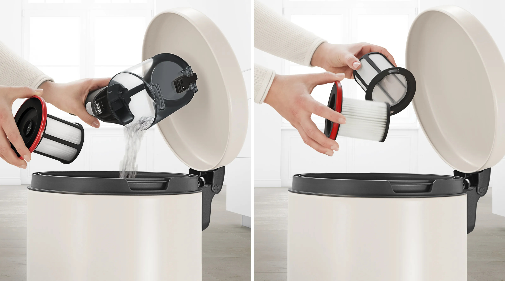 - Eenvoudig te legen: de container kan hygiënisch worden geleegd