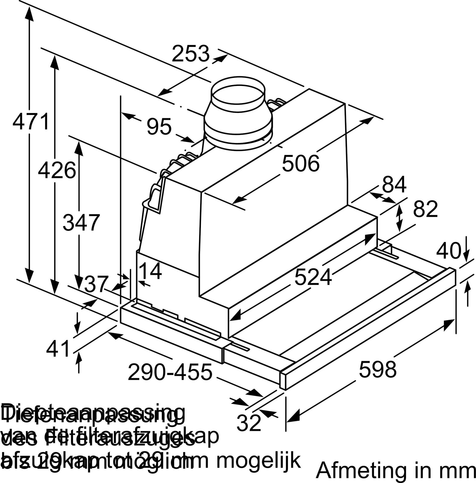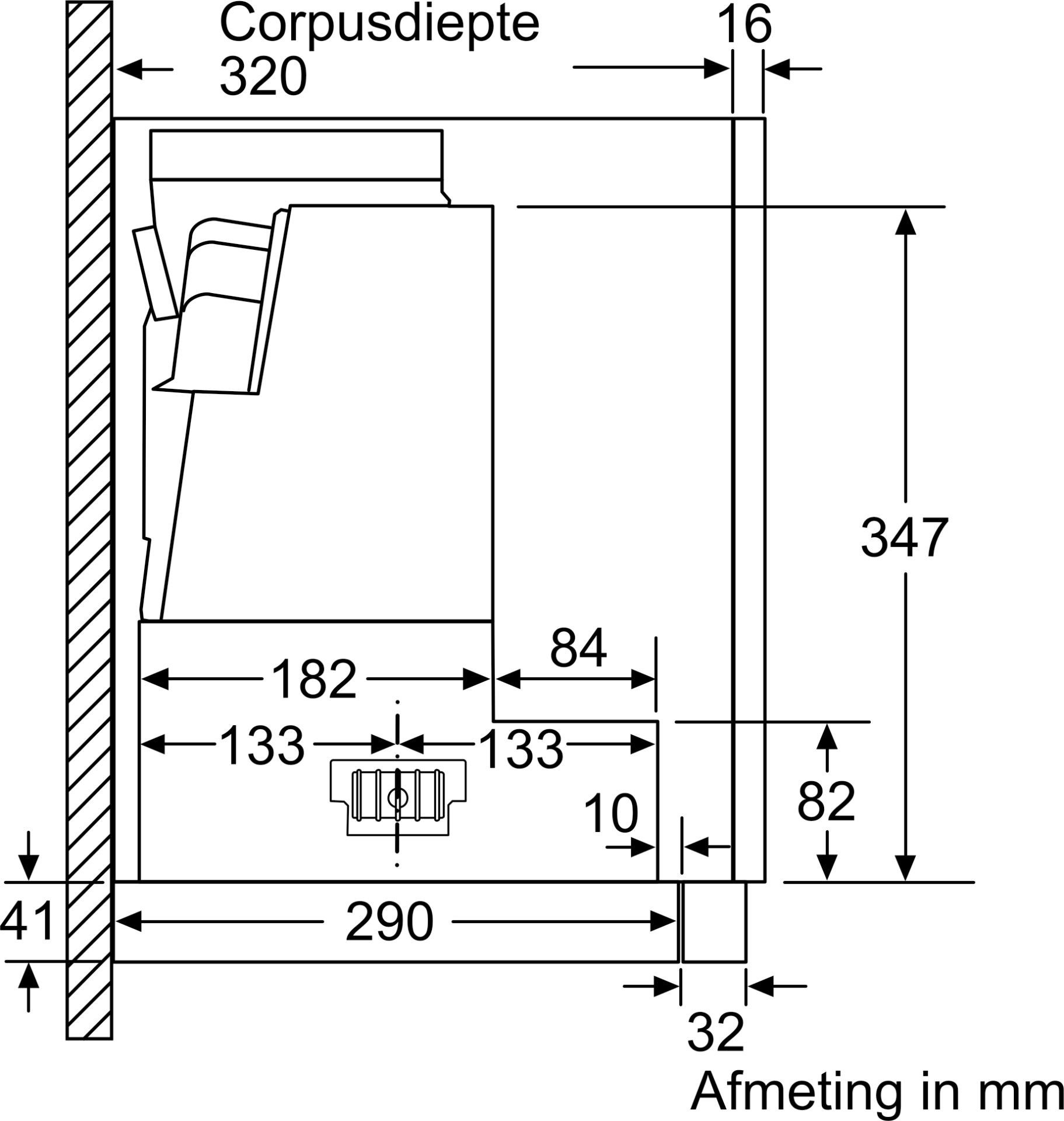 Inbouwafmetingen (HxBxD): 385 x 524 x 290 mm