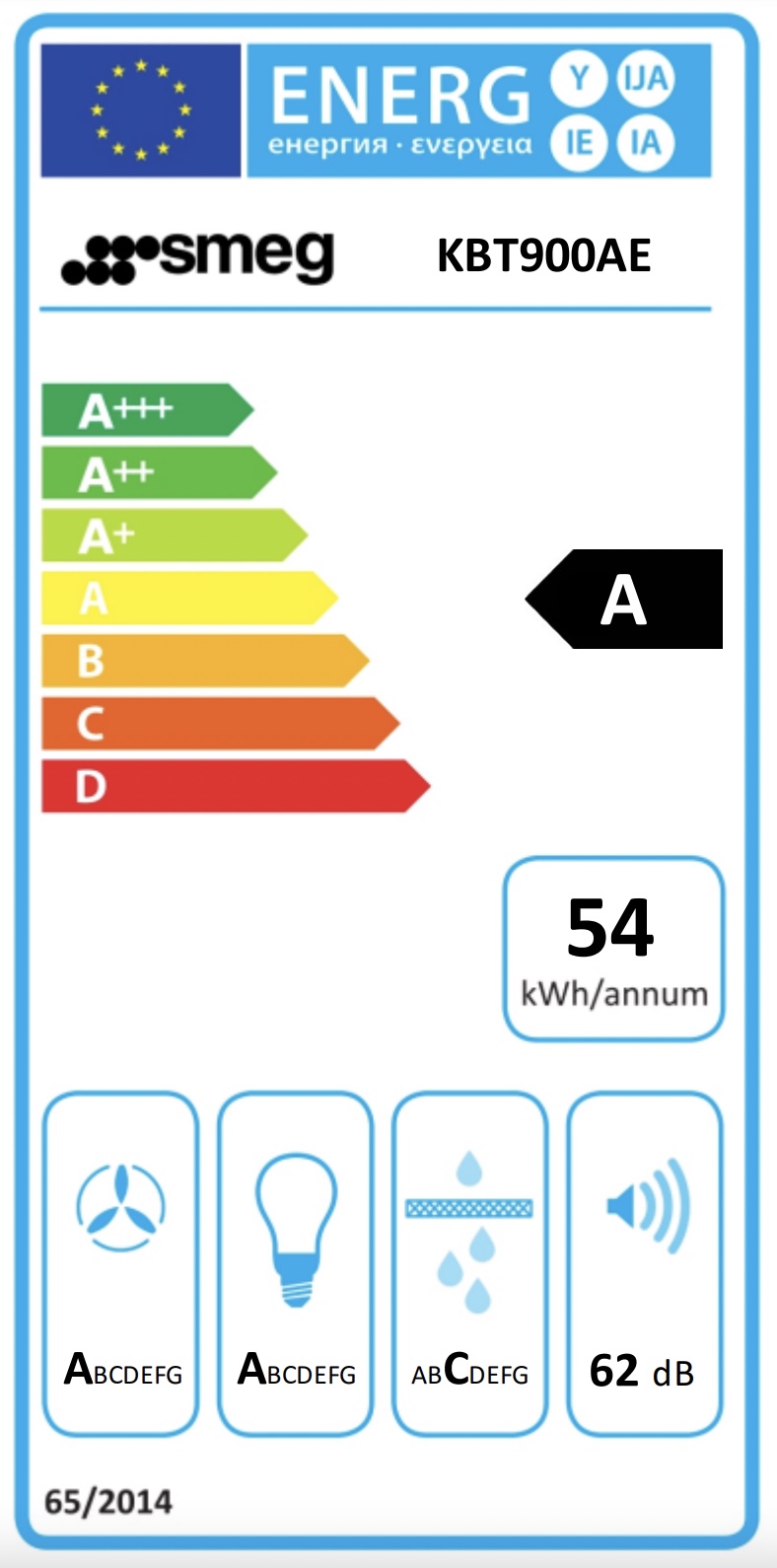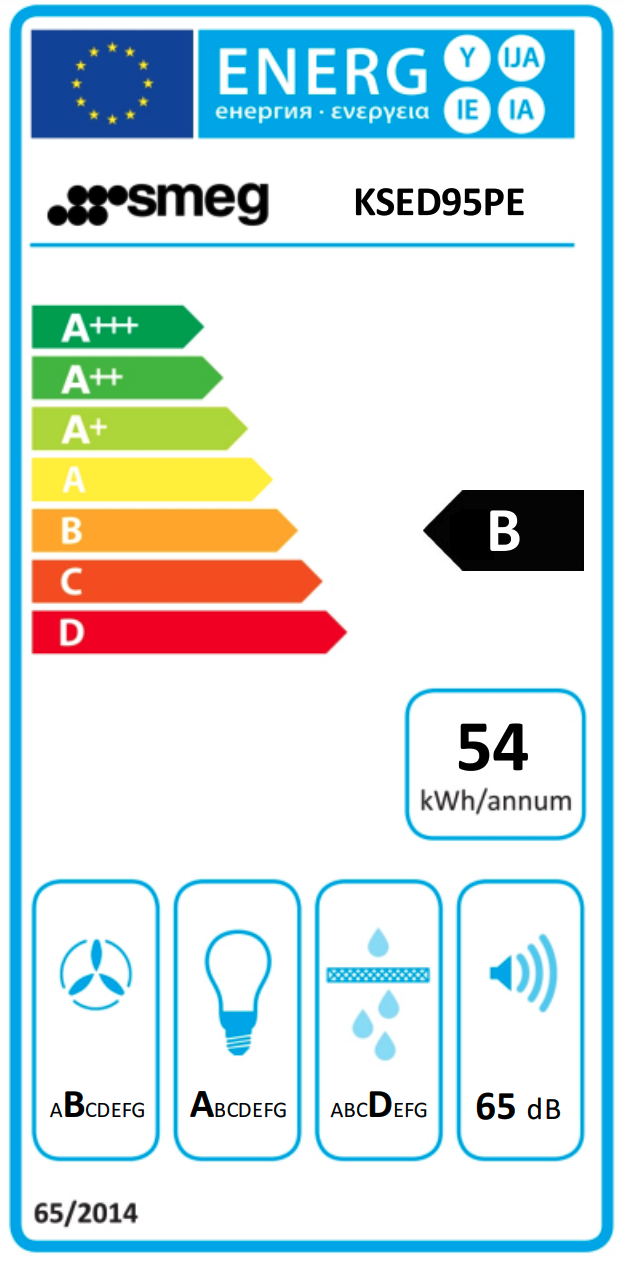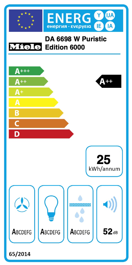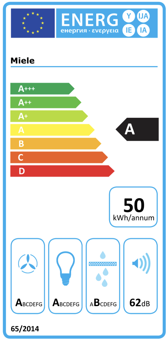 De energieklasse toont hoe energiezuinig het toestel is volgens het Europese energielabel. Hiermee kun je het energieverbruik van toestellen onderling vergelijken.