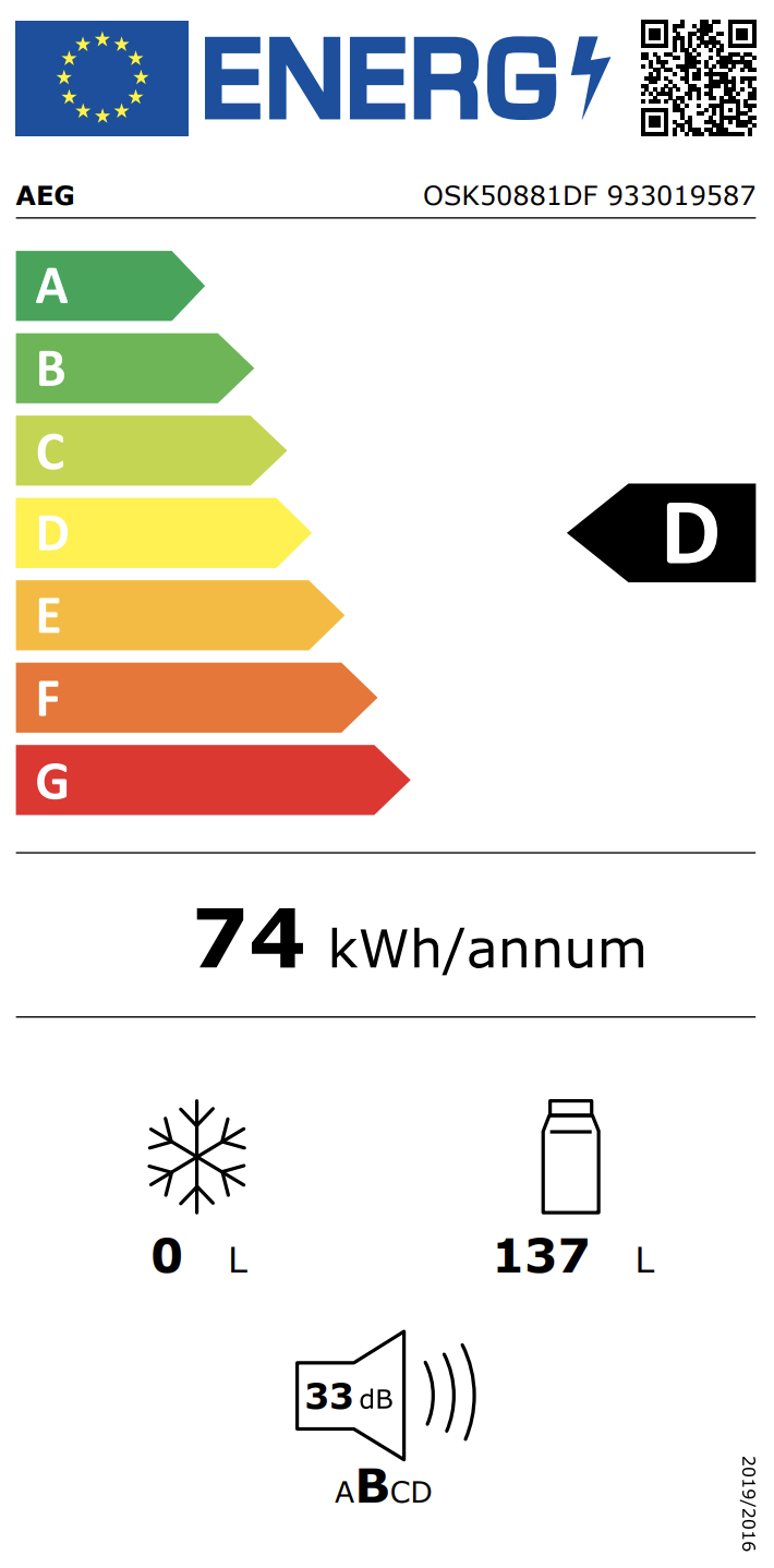 AEG TSK5O88ES 5000 inbouw vriezer - 88cm