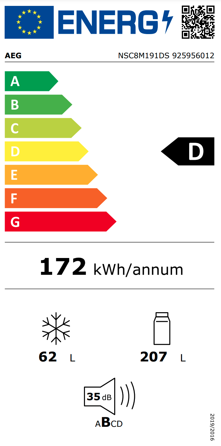 AEG NSC6M191ES 6000 koel-/vriescombinatie - 190cm