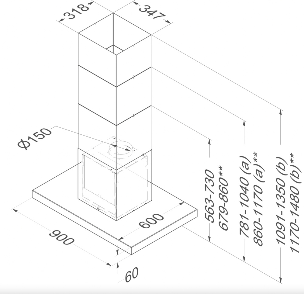 Product afmetingen met recirculatie (BxDxHmin-Hmax) (mm) 900 x 600 x -