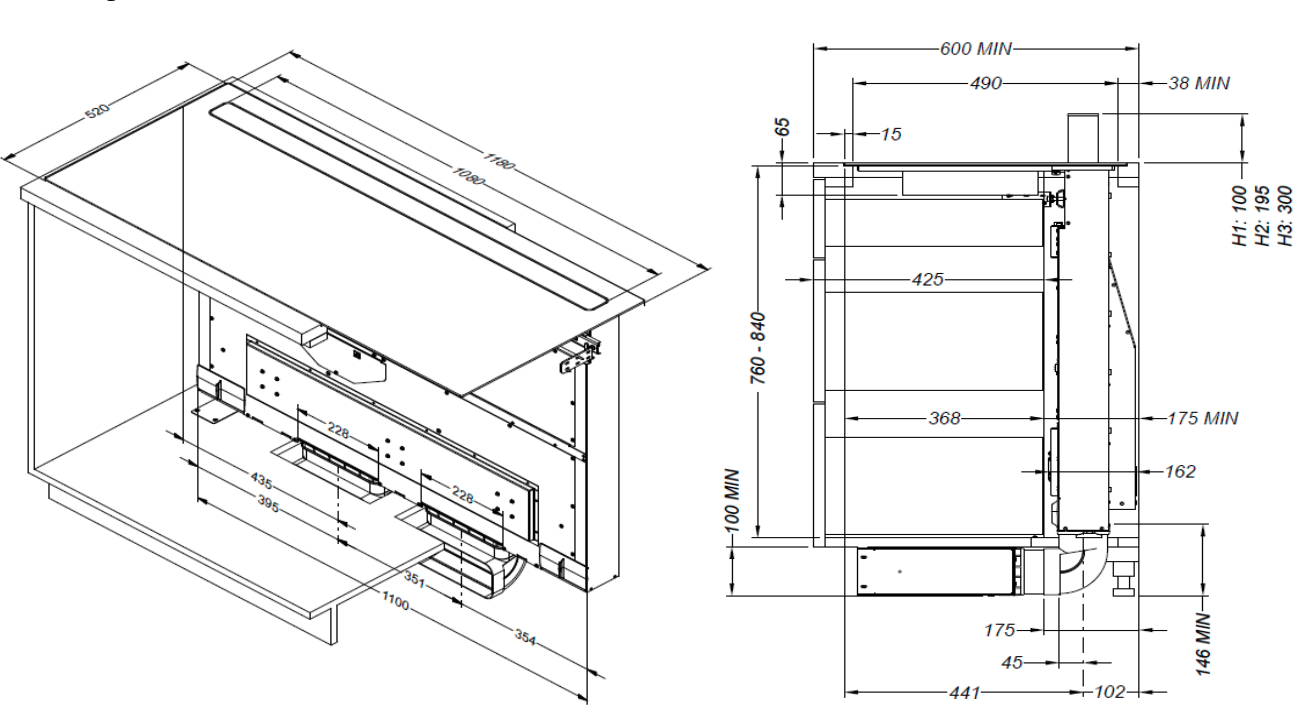 Afmetingen dampkap (mm)