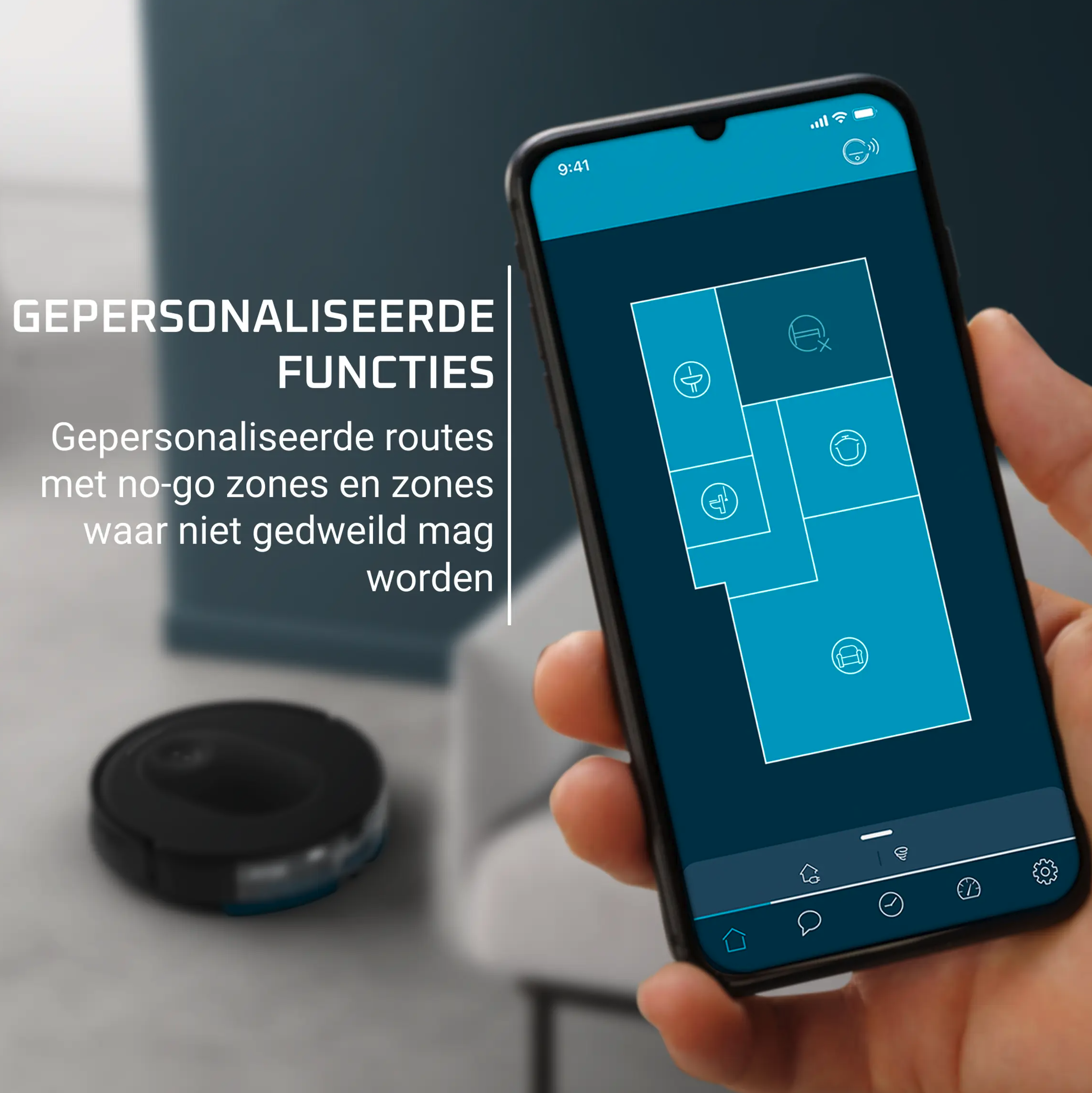Selectie van te reinigen ruimtes: Ja (gepersonaliseerd)