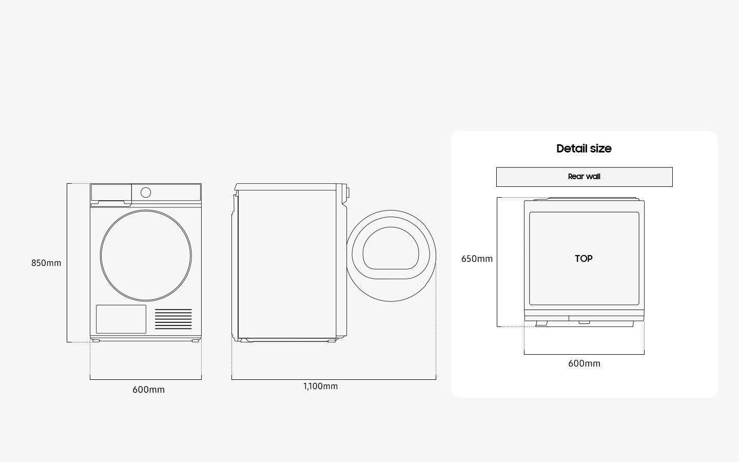 Fysieke specificaties 600 x 850 x 600 mm