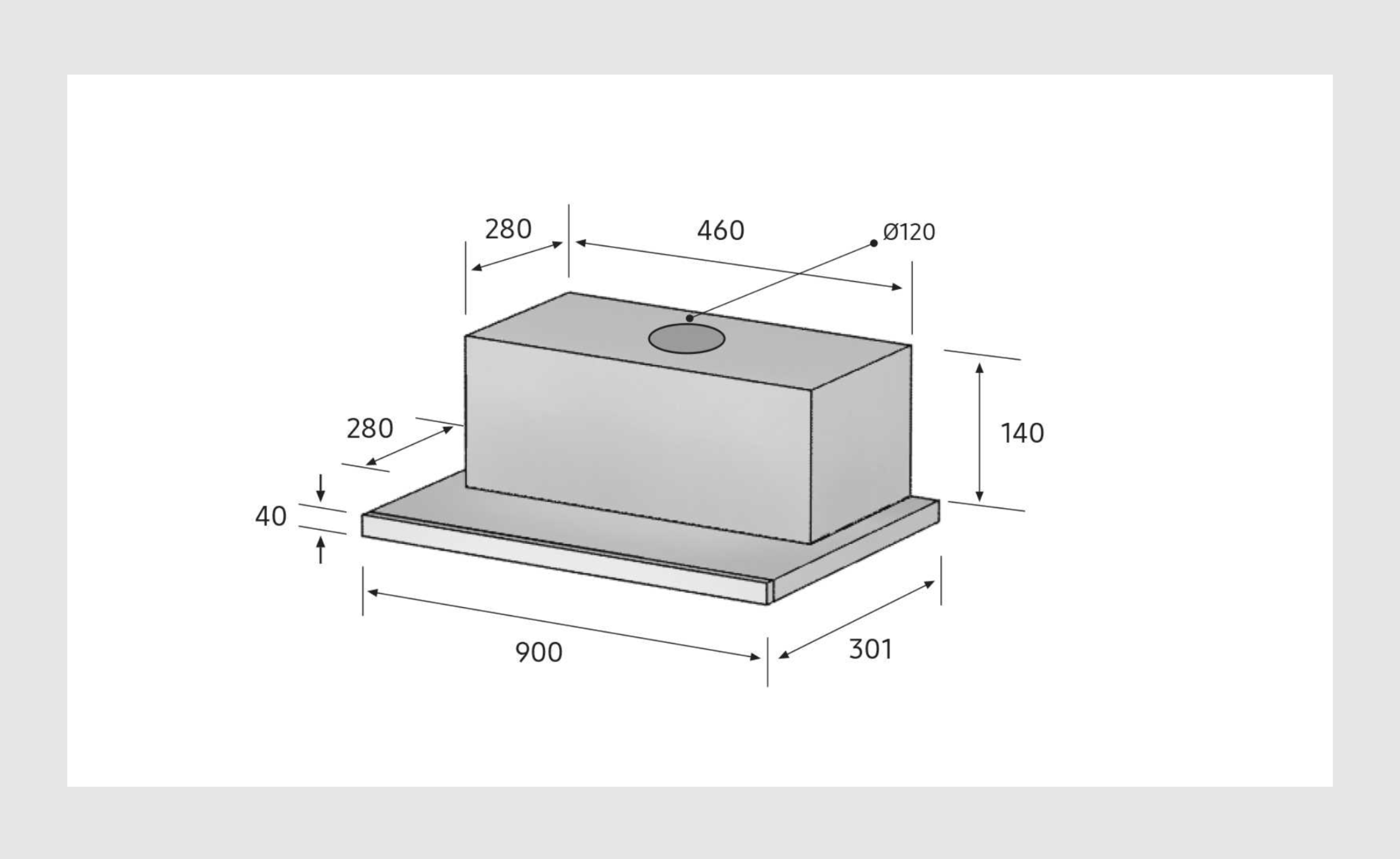 Netto (BxHxD): 898x180x301 mm