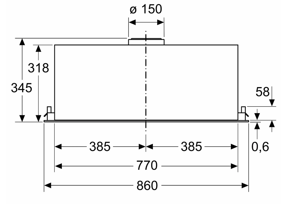 Diameter luchafvoeraansluiting Ø 150 mm