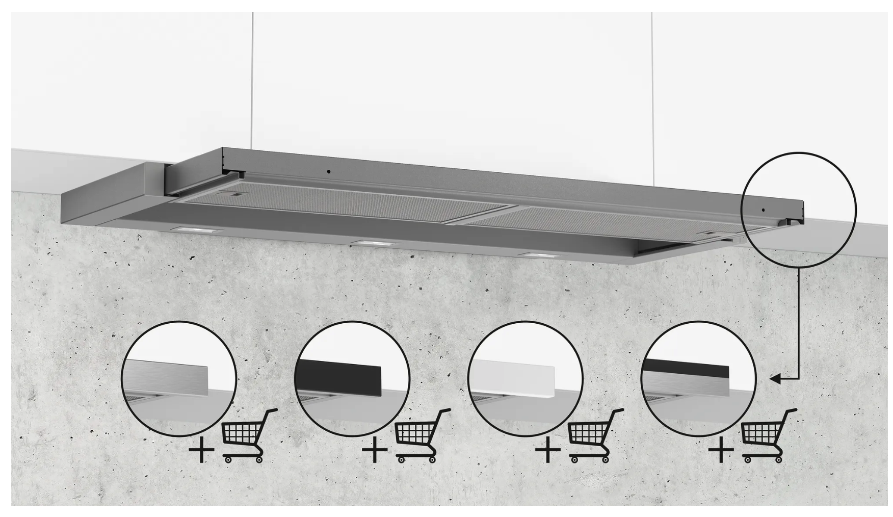 Voor het functioneren in kringloopwerking, moet de dampkap aangepast worden met een starterset of een cleanAir-module (toebehoren in optie)
