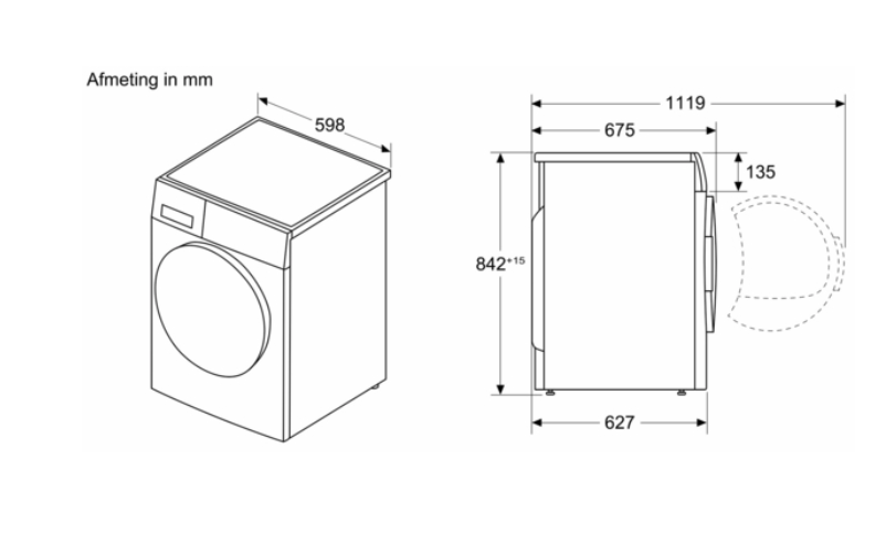 Toesteldiepte met open deur: 111.9 cm