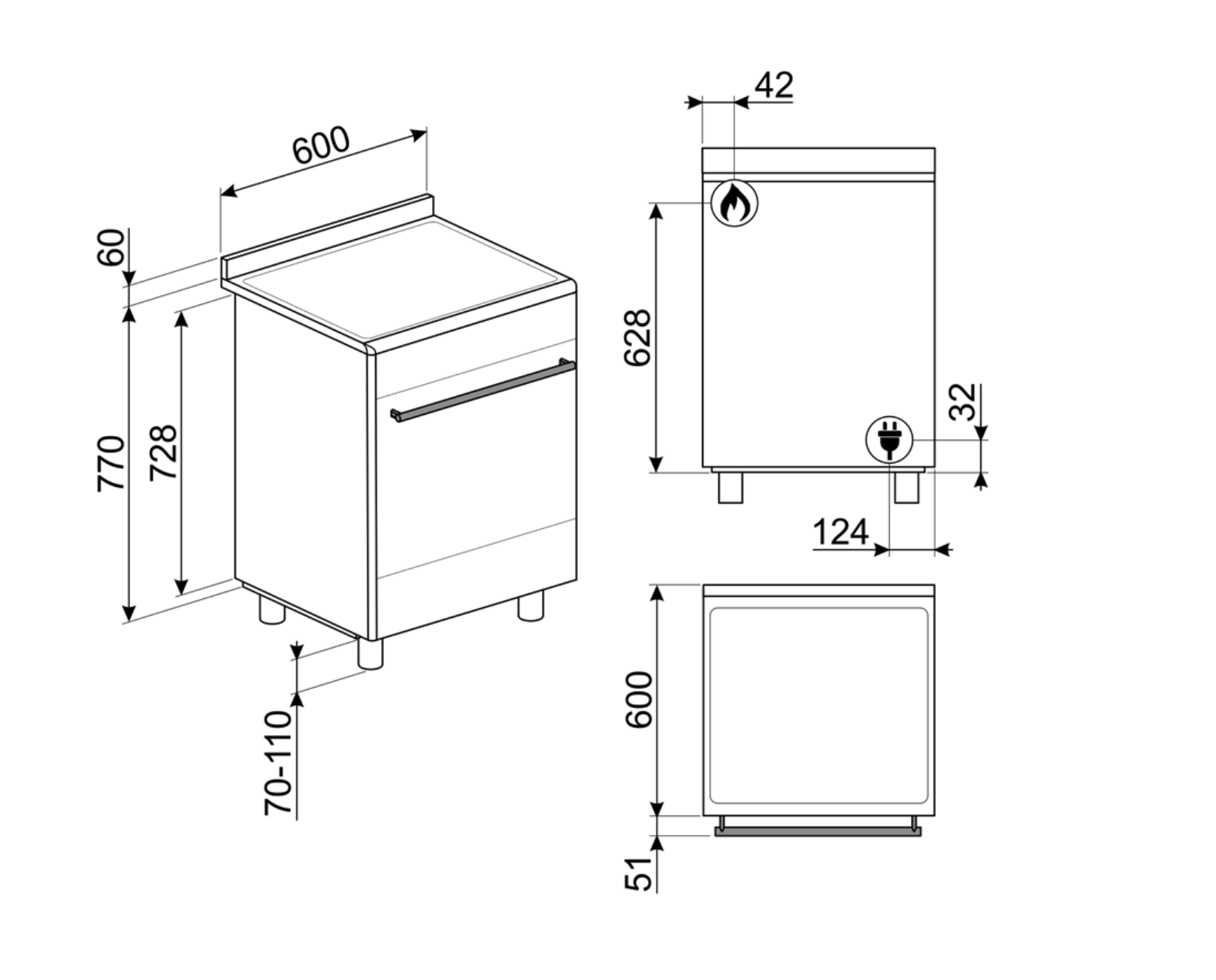 SMEG CX60GMX fornuis met gaskookplaat - 60cm